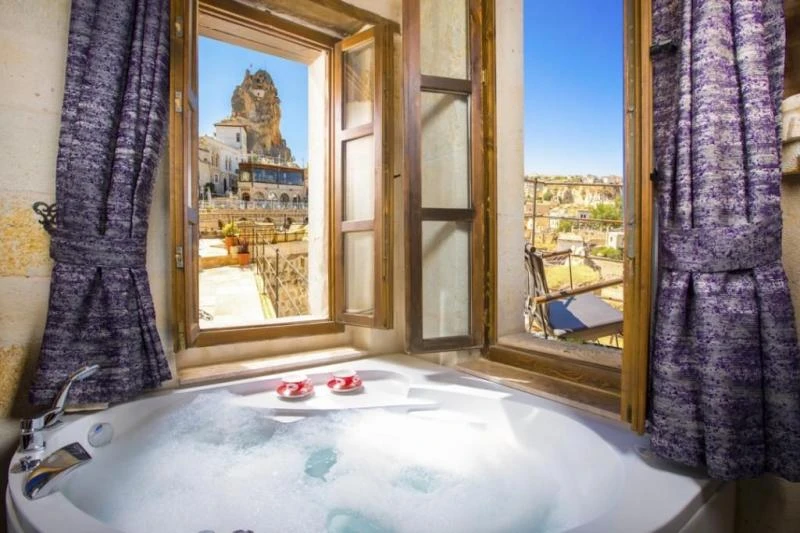 Kapadokya’nın büyüleyici dokusu içinde yer alan bu konaklama alanı, misafirlerine sakin ve özenli bir hizmet anlayışı sunar. Güne keyifli bir kahvaltıyla başlama imkânı, düzenli temizlik hizmetleri ve rahat vakit geçirilebilecek ortak alanlar, konaklamayı daha konforlu hale getirir. Oda içlerinde ise bölgenin ruhunu yansıtan detaylar, sıcak bir atmosferle birleşerek dinlendirici bir deneyim sağlar. Bulunduğu konum sayesinde Kapadokya’nın vadelerine, yürüyüş rotalarına ve ikonik manzaralarına oldukça yakındır. Gün doğumunda balonları izlemek, taş yollar arasında gezmek ya da çevredeki tarihi alanları keşfetmek isteyenler için ideal bir noktada yer alır. Doğa ve tarihle iç içe, temposu yavaş bir Kapadokya deneyimi arayanlar için güçlü bir başlangıç sunar.