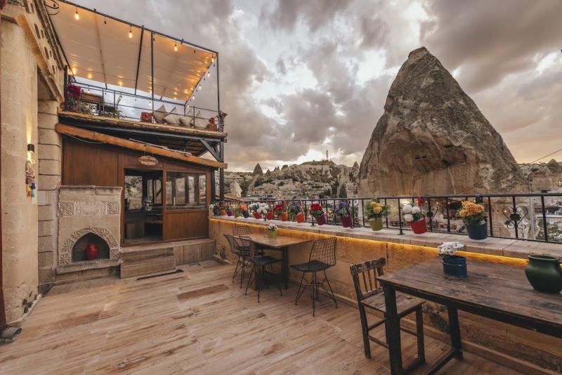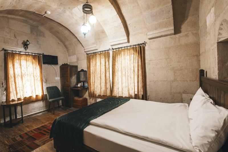 Kapadokya’nın büyüleyici masal diyarı Göreme’nin tam kalbinde yer alan bu mağara otel, tarihle modern konforun buluştuğu eşsiz bir konaklama sunuyor. Volkanik kayaların içine oyulmuş otantik mağara odalar, misafirlerine yüzyıllar öncesinin büyüsünü yaşatırken, Göreme’nin etkileyici manzarası her an gözlerinizin önünde seriliyor. Sabahları otelin taze ve yöresel lezzetlerle dolu kahvaltı hizmetiyle güne başlarken, pencereden balonların gökyüzünde süzülüşünü izlemek, bu deneyimi unutulmaz kılıyor. Göreme’nin tam merkezindeki bu konum, bölgenin tüm cazibe noktalarına kolayca ulaşmanızı sağlarken, ücretsiz WiFi ile her an bağlantıda kalabilirsiniz. Hem ruhunuzu hem de bedeninizi dinlendiren bu mağara otel, Kapadokya’nın büyüsünü doyasıya yaşayabileceğiniz bir kaçış noktası sunuyor.