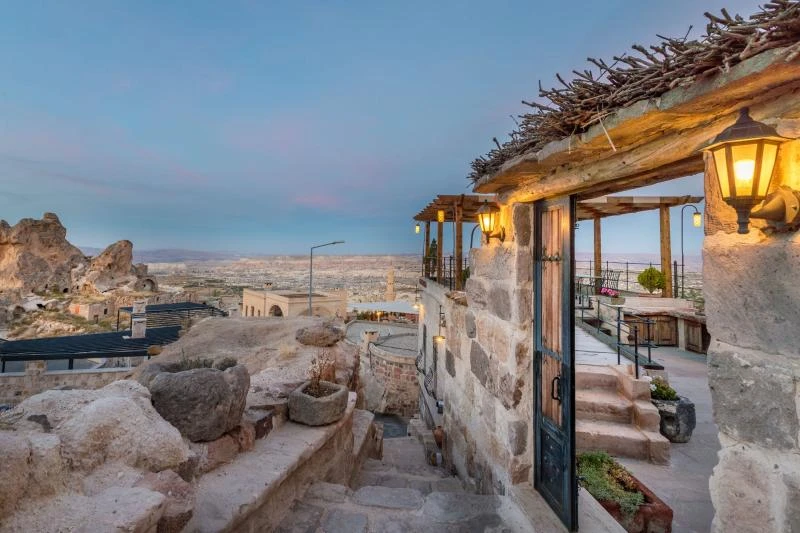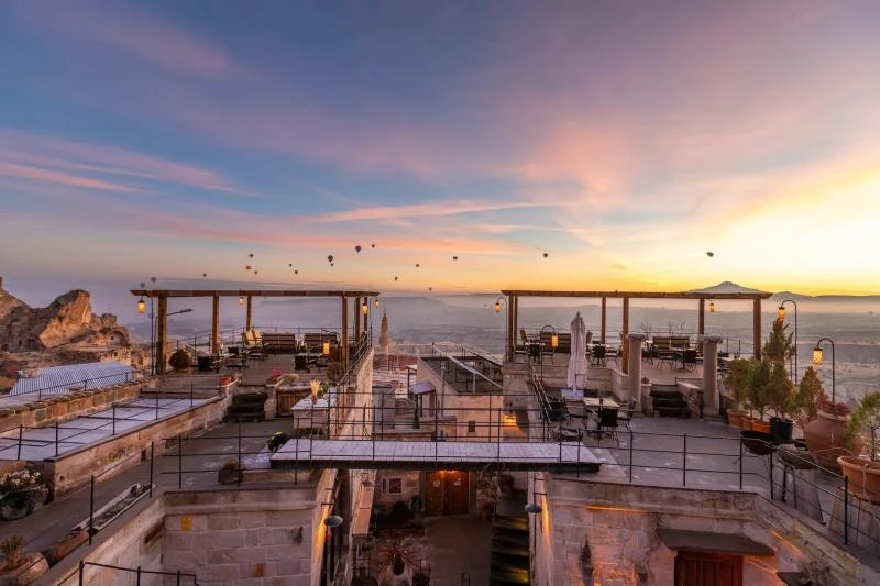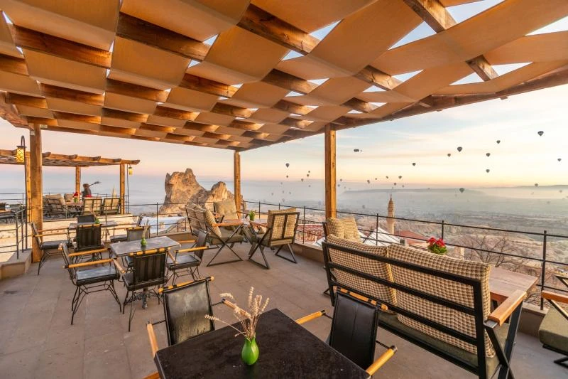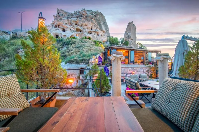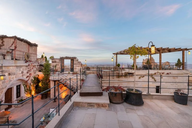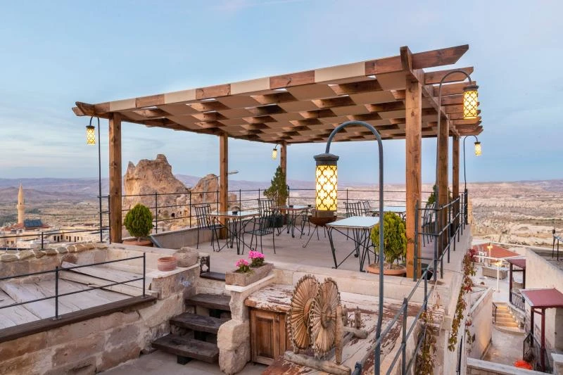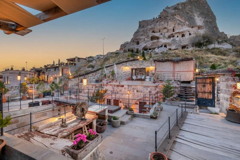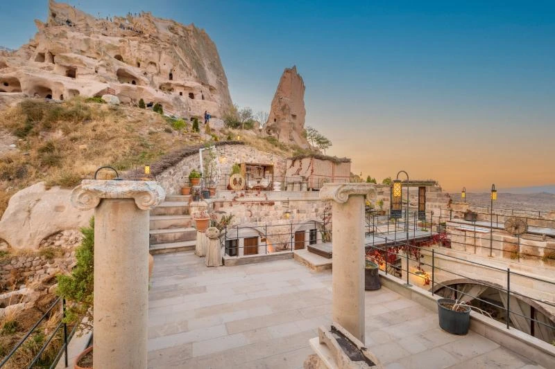 Tarihin izlerini modern konforla buluşturan bu özel tesis, kaya oyma mimarisiyle misafirlerine benzersiz bir konaklama deneyimi sunuyor. Doğal taşların mistik atmosferi, özenle dekore edilmiş odalarla birleşerek hem huzurlu hem de lüks bir ortam yaratıyor. Her odada sıcak ve samimi bir ambiyans hâkim. Geniş yaşam alanları, zarif dokunuşlarla tasarlanmış banyolar ve otantik detaylar, tatilinizi unutulmaz kılacak. Bazı odalarda yer alan jakuzi ve özel dinlenme alanları, keyif ve rahatlığı ön plana çıkarıyor. Tesisin terasından Kapadokya’nın büyüleyici vadilerine uzanan manzarayı izleyebilir, sabah gün doğumunda gökyüzünü süsleyen balonlara tanıklık edebilirsiniz. Konumu sayesinde popüler tarihi ve doğal güzelliklere kolayca ulaşabilir, hem keşif hem de dinlenme dolu bir tatil geçirebilirsiniz. Doğal dokunun içinde huzuru, romantizmi ve konforu bir arada sunan bu tesis, Kapadokya’nın büyüsünü en özel haliyle yaşamak isteyenler için ideal bir kaçış noktasıdır.