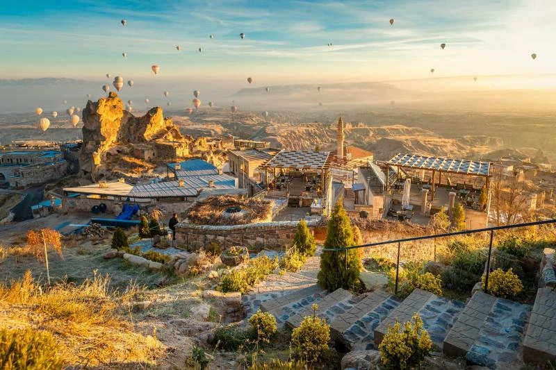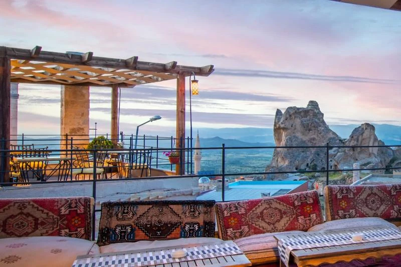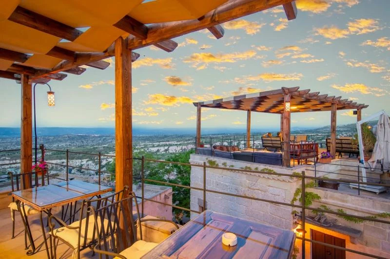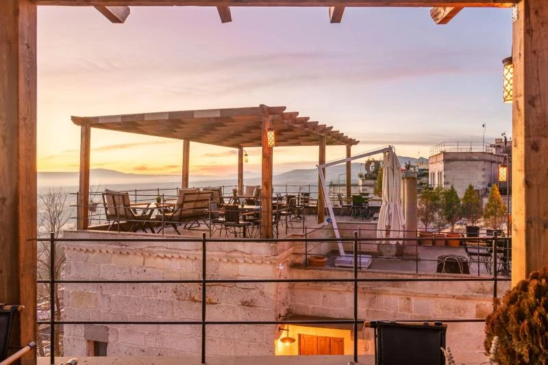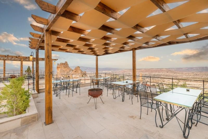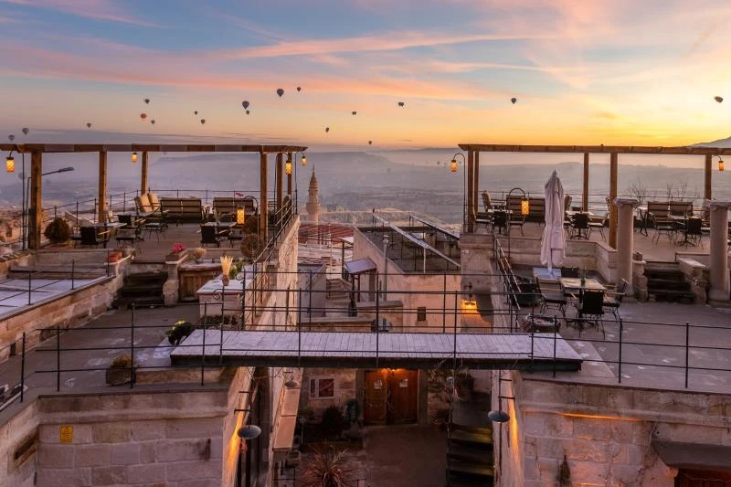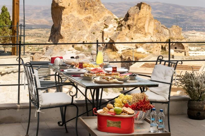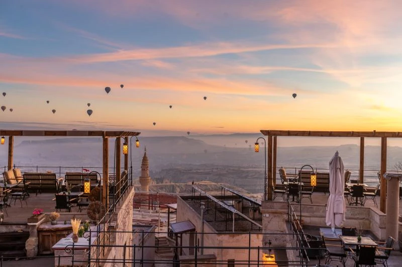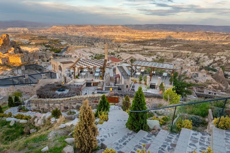 Tarihin izlerini modern konforla buluşturan bu özel tesis, kaya oyma mimarisiyle misafirlerine benzersiz bir konaklama deneyimi sunuyor. Doğal taşların mistik atmosferi, özenle dekore edilmiş odalarla birleşerek hem huzurlu hem de lüks bir ortam yaratıyor. Her odada sıcak ve samimi bir ambiyans hâkim. Geniş yaşam alanları, zarif dokunuşlarla tasarlanmış banyolar ve otantik detaylar, tatilinizi unutulmaz kılacak. Bazı odalarda yer alan jakuzi ve özel dinlenme alanları, keyif ve rahatlığı ön plana çıkarıyor. Tesisin terasından Kapadokya’nın büyüleyici vadilerine uzanan manzarayı izleyebilir, sabah gün doğumunda gökyüzünü süsleyen balonlara tanıklık edebilirsiniz. Konumu sayesinde popüler tarihi ve doğal güzelliklere kolayca ulaşabilir, hem keşif hem de dinlenme dolu bir tatil geçirebilirsiniz. Doğal dokunun içinde huzuru, romantizmi ve konforu bir arada sunan bu tesis, Kapadokya’nın büyüsünü en özel haliyle yaşamak isteyenler için ideal bir kaçış noktasıdır.