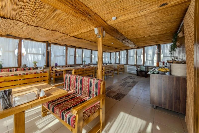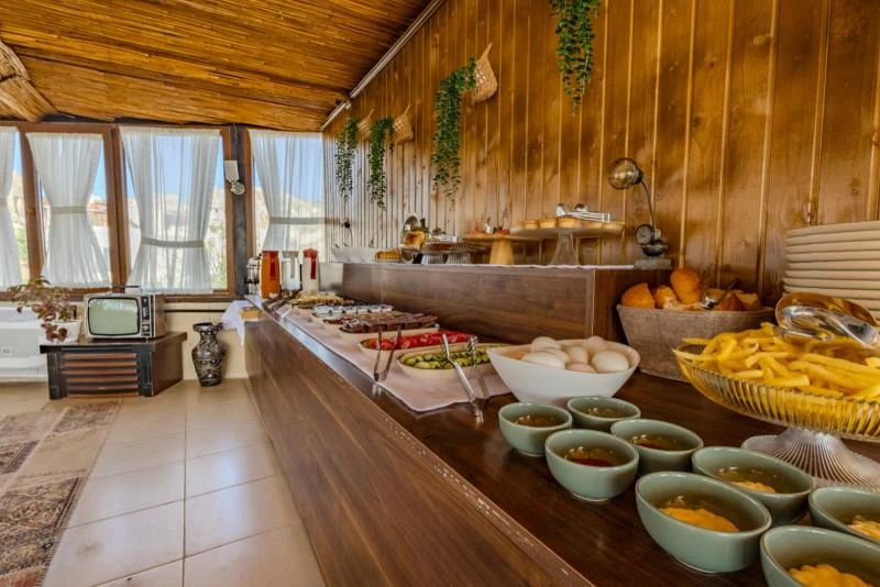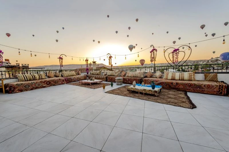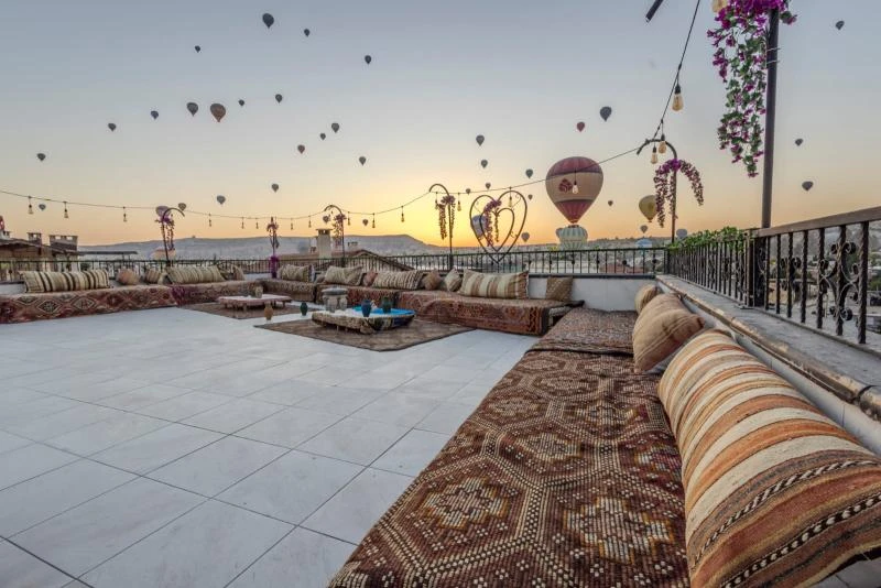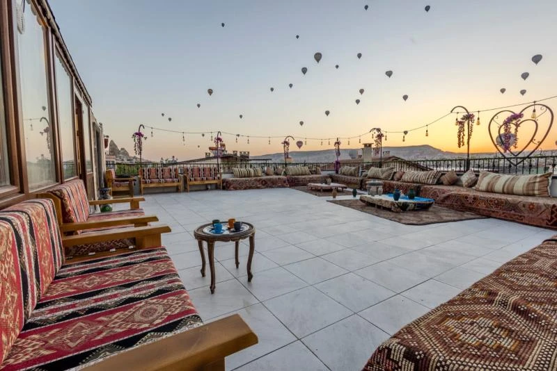 Kapadokya’nın kültür turizmi açısından en değerli noktalarından birinde konumlanan bu tesis, gün doğumunda gökyüzünü süsleyen balonları izleyebileceğiniz manzaralı terasıyla misafirlerine benzersiz bir deneyim sunuyor. Bölgenin peri bacaları, vadileri ve tarihi kaya oluşumlarıyla çevrili yapısı; yürüyüş rotalarına, açık hava müzelerine ve yerel keşif duraklarına kolay erişim sağlıyor. Günün erken saatlerinde balonların yükselişine tanıklık etmek, akşam saatlerinde ise Kapadokya’nın sakin atmosferinde dinlenmek mümkün oluyor. Tesis bünyesinde sunulan restoran hizmeti, bölgeye özgü lezzetleri modern sunumlarla bir araya getirerek konaklamayı gastronomik açıdan da zenginleştiriyor. Kültür turlarına, rehberli gezilere ve bölgesel aktivitelere açık konumuyla hem keşif odaklı seyahat edenlere hem de manzara eşliğinde sakin bir tatil arayanlara hitap ediyor. Kapadokya’nın tarih, doğa ve görsel şölenini aynı çatı altında yaşamak isteyen misafirler için güçlü ve keyifli bir konaklama alternatifi sunuyor.