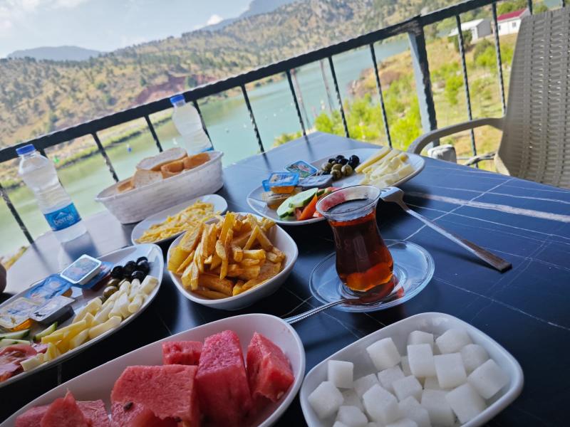 Tesis son derece pis bakımsız ilgisiz bir yer. Kahvaltı berbat, bim hazır paket ürünlerinin (bal,reçel tereyağ, gibi) bir tabağa doldurulup önünüze koyuyorlar. Odalarda şampuan vs yok. Oda basitçe temizlenmiş bakımsız. Bahçe de otlarla dolu ,orda da bakımsızlık cok fazla. Tesisin çalışanları kim, işletmecisi kim belli değil iki üç tane genç çocuk var herşeye bakıyorlar. Kahvaltı ettiğiniz masalar geceden kalma pisliklerle dolu. Tek guzel şey manzara başka hiçbir özelliği yok. Gündüz sıcak oluyor odalarda(Bungalov oda) klima yok . Pencere bi tane hava almanız zorlaşıyor. Bir işletmeye yakışmayan ne varsa burda mevcut. iki günlük bayram tatili için gittik 11 bin tl para ödedik doğru dürüst bir kahvaltı ve özenli bir oda bulamadık. Yemeklerini biz yemedik kendimiz mangal yaktık. Bungalov da mutfak olmadığı için o da zor oldu. Yorumları okumadan karar vermeyin.