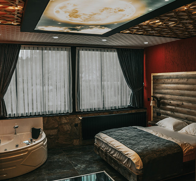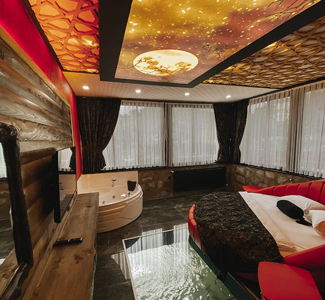 Rize Pazar’da bulunan orman manzaralı jakuzili bungalov otel, doğayla iç içe huzurlu bir tatil sunuyor. Beş farklı oda tipiyle misafirlerine çeşitlilik sunan bu otelde, odaların zeminine yerleştirilen cam paneller sayesinde nehir manzarasının keyfini odanızdan çıkarabilirsiniz. Özel otopark ve halka açık otopark seçenekleri de konukların araçlarını güvenle park etmelerini sağlıyor. Tesiste, alakart restoran hizmeti ve çocuk parkı gibi olanaklar mevcut. Günlük temizlik hizmetleriyle hijyen konforu sağlanırken, 24 saat açık resepsiyon hizmeti sayesinde misafirlerin her türlü ihtiyacına anında yanıt veriliyor. Hem doğa severler hem de konfor arayanlar için ideal bir kaçamak sunan bu otel, Rize’nin doğal güzellikleriyle huzurlu bir tatil arayanları bekliyor.