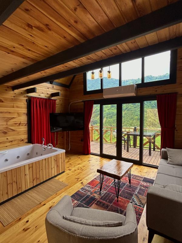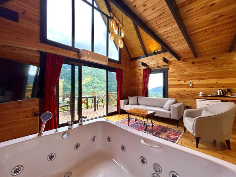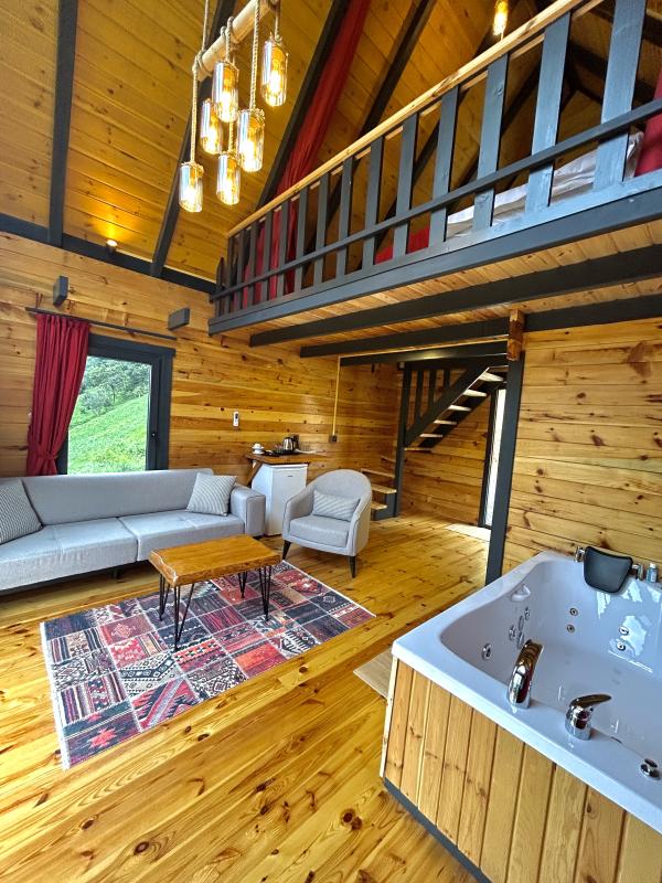 Tesiste bulunan 6 adet loft katlı jakuzili suit bungalov ve teraslı cafe restoran, Fırtına Vadisi'nin muhteşem panoramik manzarasına sahiptir. Her bir bungalov, konuklarına konforlu bir konaklama sunarken, jakuzi keyfiyle rahatlama imkanı sağlar. Teraslı cafe restoran ise eşsiz manzara eşliğinde lezzetli yemekler sunar. Bu benzersiz tatil köyünde doğanın huzur dolu atmosferinde unutulmaz anlar yaşayabilirsiniz.
