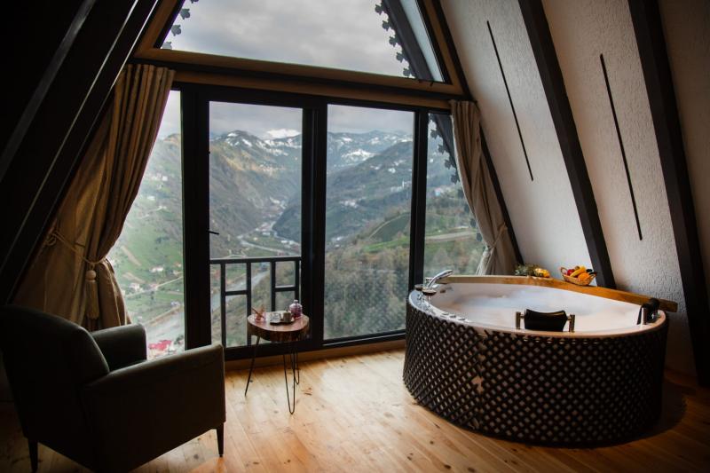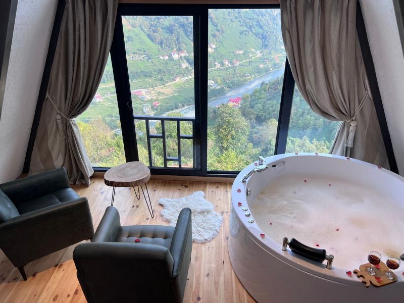 Bir tatil cennetine hoş geldiniz! Doğanın kalbinde yer alan, ormanın kucaklayıcı sarmalı içinde yer alan jakuzili ve saunalı bungalovlarımızla sizi unutulmaz bir deneyime davet ediyoruz. Güne kuş cıvıltılarıyla uyanacak, doğanın huzur dolu sesleriyle gün boyu sarılacaksınız. Eşsiz manzarasıyla sizi büyüleyecek her an, ruhunuzu dinlendirirken bedeninizi şımartacak. Jakuzide yıldızların altında keyif yapabilir, saunada günün yorgunluğunu atabilirsiniz. Temiz hava ve huzur dolu atmosferiyle dolup taşan bu tatil mekanı, sizleri kendine çekmeye hazır. Burada, doğayla iç içe ve lüksün keyfini çıkaracak, unutulmaz anılar biriktireceksiniz.
