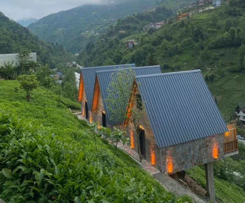 Karadeniz’in yemyeşil vadilerinde, Fırtına Deresi’nin huzur veren sesleri eşliğinde doğayla iç içe konumlanan bu bungalov tesisi, hem aileler hem de çiftler için keyifli bir tatil imkânı sunuyor. Ahşap yapısı ve sıcak atmosferiyle öne çıkan tesis, konuklarına samimi ve unutulmaz bir konaklama deneyimi yaşatıyor. Konaklama birimleri arasında dere ve dağ manzaralı standart bungalovlar, jakuzili özel seçenekler ve geniş yaşam alanına sahip suit odalar bulunuyor. Her odada klima, Wi-Fi, minibar, balkon ya da veranda gibi modern konfor detayları yer alırken, banyolarda saç kurutma makinesi, havlu ve kişisel bakım ürünleri bulunuyor. Sabahları yöresel lezzetlerle hazırlanan kahvaltı ile güne başlanırken, gün boyu verandada Fırtına Deresi’nin sesi eşliğinde dinlenmek ya da çevredeki doğa yürüyüşlerine çıkmak mümkün. Tesiste ücretsiz otopark, 24 saat resepsiyon ve günlük temizlik hizmeti de misafirlere sunuluyor.