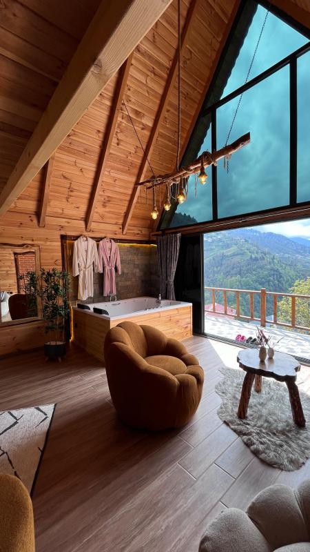 Rize'nin muhteşem doğasında, yemyeşil ormanların kucakladığı bir cennet köşesi sizi bekliyor. Eşsiz doğa manzarasıyla çevrili bu huzur dolu tesiste, hayalinizdeki tatilin tadını çıkarabilirsiniz. Ahşap bungalovlar, doğanın içinde sakin ve huzurlu bir konaklama deneyimi sunarken, lüks ve konfor detaylarıyla sizi şımartıyor. Jakuzili odalarıyla misafirlerine ferahlık ve rahatlık sunan bu tesiste, günün stresinden uzaklaşmanın keyfini yaşayacaksınız. Her biri özenle tasarlanmış bungalovlar, modern ve rustik detayların uyumlu bir şekilde bir araya geldiği sıcak bir atmosfer yaratıyor. Doğanın sesleri eşliğinde uyandığınızda, kuş cıvıltıları ve çiçeklerin kokusuyla güne pozitif bir başlangıç yapabilirsiniz. Tesisteki açık hava jakuzilerinde, yıldızların altında geçireceğiniz keyifli saatler, manzaranın tadını çıkarırken dinginliğinizi artıracak. Rize'nin eşsiz doğa manzarasıyla çevrili bu lüks tesiste, unutulmaz bir tatil deneyimi yaşamaya hazır olun. Doğanın kalbinde huzur dolu bir kaçamak için ideal olan bu bungalovlar, size benzersiz bir konaklama ve dinlendirici bir mola sunuyor. Rize'nin doğal güzellikleriyle çevrili bu cennet köşesinde ruhunuzu dinlendirin ve doğanın büyüsüne kapılın.