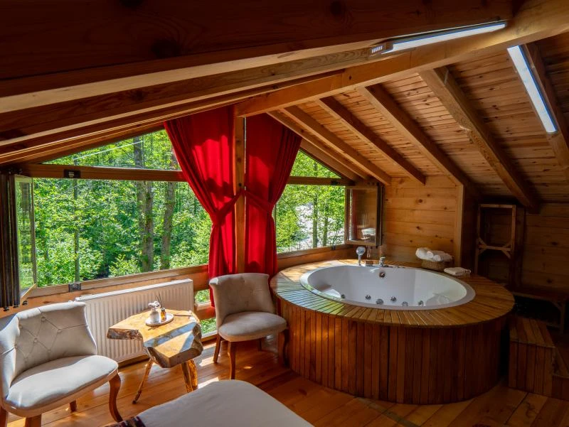 Rize Zilkale ve Fırtına Deresi’nin yanında yer alan bungalovlarımız, doğanın içinde huzurlu bir tatil sunuyor. Jakuzili odalarımızda dinlenebilir, zipline ve rafting gibi macera dolu aktivitelerle zaman geçirebilirsiniz. Doğa yürüyüşleriyle çevreyi keşfederken, akşamları jakuzinizde rahatlayabilirsiniz. Ücretsiz internet ve özel otopark gibi olanaklarımızla rahat bir tatil geçirmeniz için her şey hazır. Açık büfe ya da alakart restoranımızda lezzetli yemekler yiyebilir, mangal alanında barbekü yaparak keyifli bir akşam geçirebilirsiniz. Aileler için bebek ve çocuk karyolası gibi detaylar da düşünülmüş. Resepsiyonumuz 24 saat açık, bu sayede her ihtiyacınıza anında yardımcı olabiliriz. Ayrıca, havaalanı servisi ve transfer hizmetlerimizle ulaşım konusunda da sizi rahat ettiriyoruz.