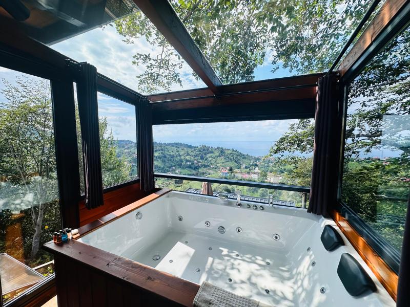 Rize Ardeşen’de, doğanın içinde huzur dolu bir kaçış noktası olan bu bungalov otel, doğal taş ve ahşap kullanılarak modern bir tarzda inşa edilmiştir. Sessizliği ve huzuru arayanlar için ideal bir ortam sunan bu otel, ısı ve ses izolasyonu sayesinde konforlu ve sakin bir tatil deneyimi yaşatır. Gün batımı, dağ, doğa ve deniz manzarasına karşı keyifli anlar yaşayabileceğiniz bu otel, konuklarına unutulmaz bir deneyim sunuyor. Sabahları odanızda veya terasta sunulan zengin kahvaltıyla güne başlayabilir, doğal ürünlerin tadını çıkarabilirsiniz. Gün boyu otelin sunduğu tüm olanaklardan faydalanarak, doğanın kucağında stresten arınmış bir tatil geçirebilirsiniz. Akşam yemekleri ise ekstra hizmet olarak otelin restoranında sunulmakta ve Karadeniz'in eşsiz lezzetleri sofranıza gelmektedir. Bungalov odalarında jakuzili banyoda rahatlayabilir, şöminenin karşısında huzur dolu anlar geçirebilirsiniz. Tam donanımlı mutfak ile kendi yemeklerinizi yapma imkanı sunulurken, terasınızda bu yemekleri sevdiklerinizle birlikte doğa manzarasına karşı keyifle yiyebilirsiniz. Mangal keyfi yapmak isteyen misafirler için teras ve bahçe alanı oldukça uygundur. Ücretsiz otopark hizmeti ile aracınızı güvenle bırakabilir, doğanın kalbinde rahat bir tatilin tadını çıkarabilirsiniz. Sessizlik ve mahremiyet arayanlar için mükemmel bir seçenek olan bu otel, modern dokunuşlarla donatılmış, doğayla iç içe bir konfor alanı sunar. Rize Ardeşen’de, hem doğayla baş başa hem de lüks ve modern imkanlarla donatılmış bu bungalov otel, Karadeniz’in huzurlu atmosferinde sizleri bekliyor.