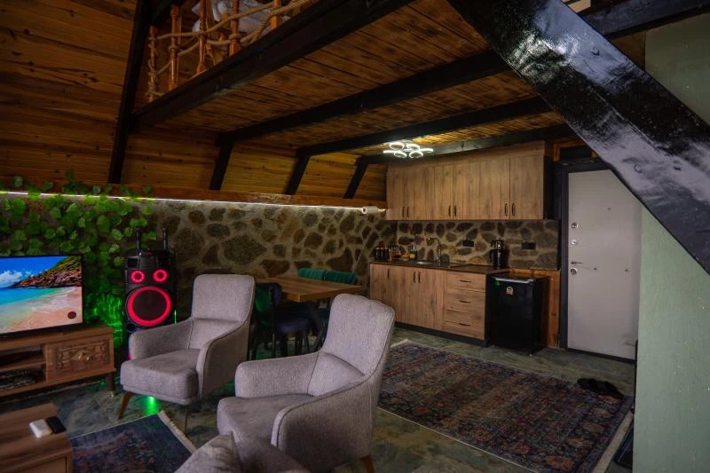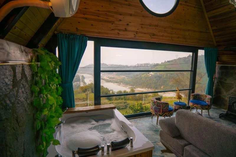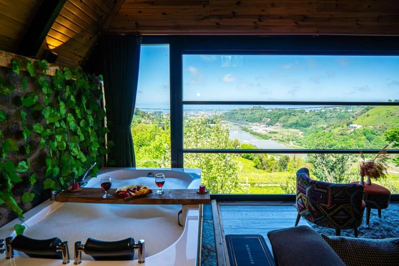 Rize Ardeşen Jakuzili Bungalov, doğanın içinde rahatlatıcı bir tatil sunuyor. Misafirler, ücretsiz internet ile bağlantıda kalabilirken, halka açık otopark sayesinde araçlarını güvenle bırakabilirler. Aktivite seçenekleri arasında zipline ve trekking ile macera dolu anlar yaşayabilirsiniz. Spa olanaklarıyla jakuzi keyfi yaparak günün yorgunluğunu atabilirsiniz. Alakart restoran, lezzetli yemekler sunarken kapalı restoran ve kahvaltı salonu da güne güzel bir başlangıç yapmanızı sağlıyor. Rize'nin muhteşem doğal güzellikleri arasında unutulmaz anılar biriktirmek için sizi bekliyoruz!