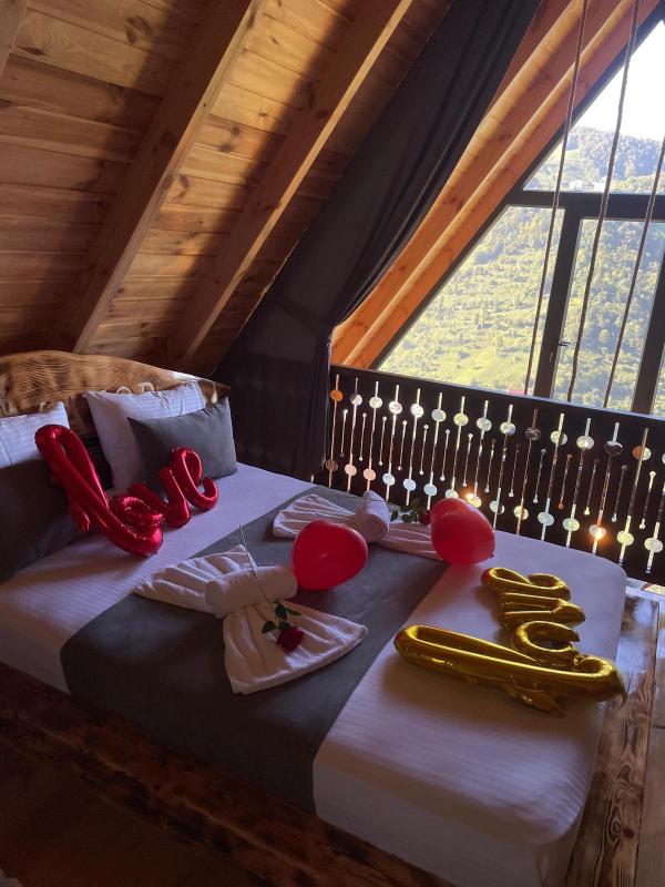 Rize’nin büyüleyici doğasında, Çamlıhemşin’in huzurlu köylerinden birinde yer alan dubleks bungalovumuz, doğayla iç içe unutulmaz bir tatil deneyimi sunuyor. Göz alıcı vadi ve nehir manzarasıyla karşılaşacağınız bu mekan, hem rahatlayabileceğiniz hem de ailenizle ya da arkadaşlarınızla keyifli anlar geçirebileceğiniz bir sığınak. Bungalov, 6 kişi kapasiteli olarak tasarlandı, böylece sevdiklerinizle birlikte burada güzel anılar biriktirebilirsiniz. Giriş düz ayak olduğu için engelli misafirlerimiz için de rahat bir konaklama imkanı sunuyoruz. Kendine ait otopark alanı sayesinde, ulaşım konusunda herhangi bir sıkıntı yaşamadan keyifli bir tatil geçirebilirsiniz. Bungalovun içerisinde sizi sıcak bir atmosfer karşılıyor; odanın köşesinde yer alan şömine, soğuk akşamların tadını çıkarmanıza yardımcı olurken, lüks bir jakuzi, günün yorgunluğunu atmanız için ideal bir seçenek sunuyor. Rahat koltuklarda otururken, 55 inç TV’den izlemek istediğiniz film veya dizi keyfini çıkarabilir, hızlı internet bağlantımızla sevdiklerinizle sosyal medyada anılarınızı paylaşabilirsiniz. Her sabah uyanıp açık balkona adım attığınızda, serin dağ havasını derin derin içinize çekip, gözlerinizi doğanın güzelliklerine dikip, kuşların cıvıltısı eşliğinde kahvenizi yudumlayabilirsiniz. Bungalov içinde ayrıca çay ve kahve ikramlarımız mevcut, böylece günün her saatinde kendinize bir fincan sıcaklık katabilirsiniz. Yemek servisi, odanıza yapılmakta, bu sayede doğanın tadını çıkarırken, yemeklerinizi rahatlıkla bungalovunuzda yiyebilirsiniz. Yerel lezzetleri tatmak için dışarı çıkmak yerine, bu eşsiz atmosferde, sevdiklerinizle birlikte yemeklerinizi yemenin keyfini sürebilirsiniz. Çamlıhemşin’in büyüleyici manzarası, doğanın kucaklayıcı sessizliği ve bungalovun sunduğu konforla, burada geçireceğiniz her an unutulmaz olacak. Bu tatil, sadece bir kaçış değil; ruhunuzu dinlendirecek, doğayla bütünleşmenizi sağlayacak bir deneyimdir. Huzur dolu bir tatil için sizi Rize’nin eşsiz köşesine davet ediyoruz!