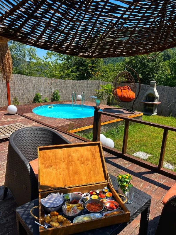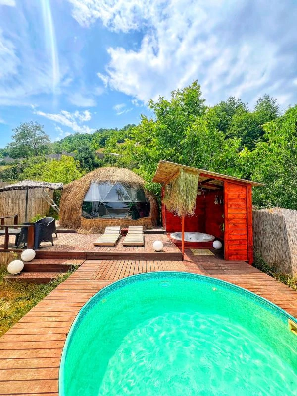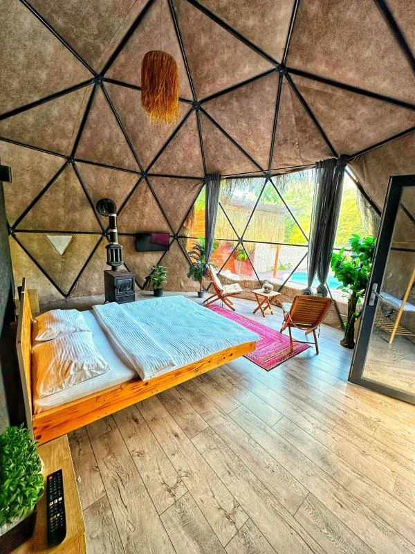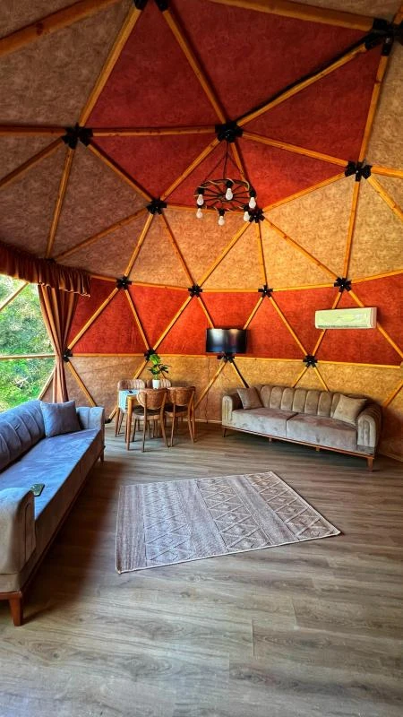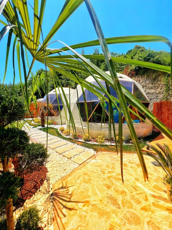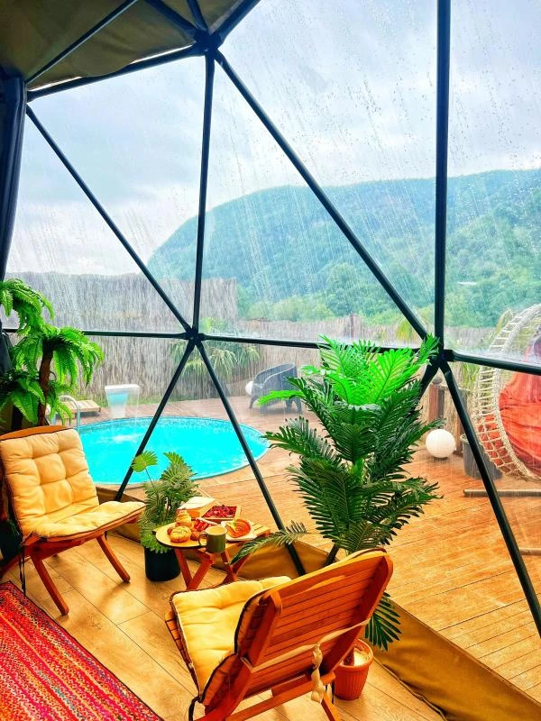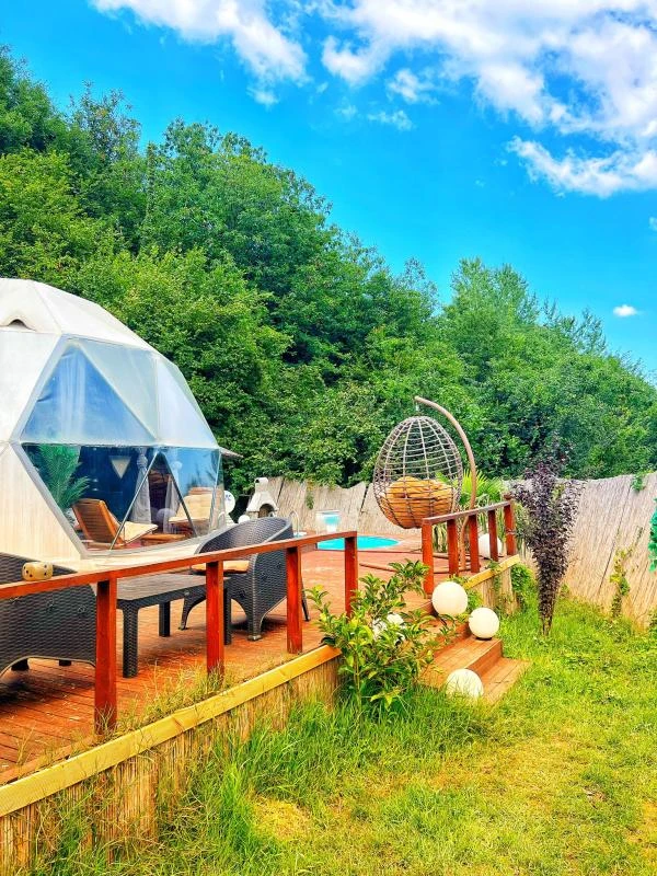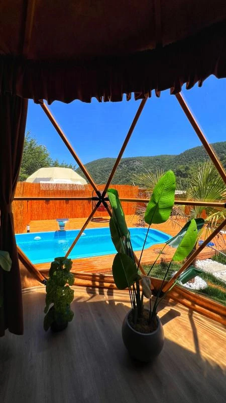 Sapanca'daki havuzlu ve jakuzili glamping otel, doğanın kollarında lüks bir kaçamak arayanlar için mükemmel bir yer! Ücretsiz internetle her an çevrimiçi kalabilir, halka açık otoparkta aracınızı rahatça bırakabilirsiniz. Açık yüzme havuzunda serinlerken, özel havuz ve ısıtmalı havuzda kendinizi şımartın. Lezzetli yemeklerin tadını çıkarabileceğiniz restoran ve kafe seçenekleri sizi bekliyor. Mangal keyfi yaparken sevdiklerinizle birlikte güzel anılar biriktirin. Güneşlenme terasında uzanıp, bahçede doğanın tadını çıkarırken, glamping otelin sunduğu bu eşsiz deneyimle kendinizi doğanın kucağında bulacaksınız. Doğayla iç içe, lüks bir tatil için bu otel tam aradığınız yer!