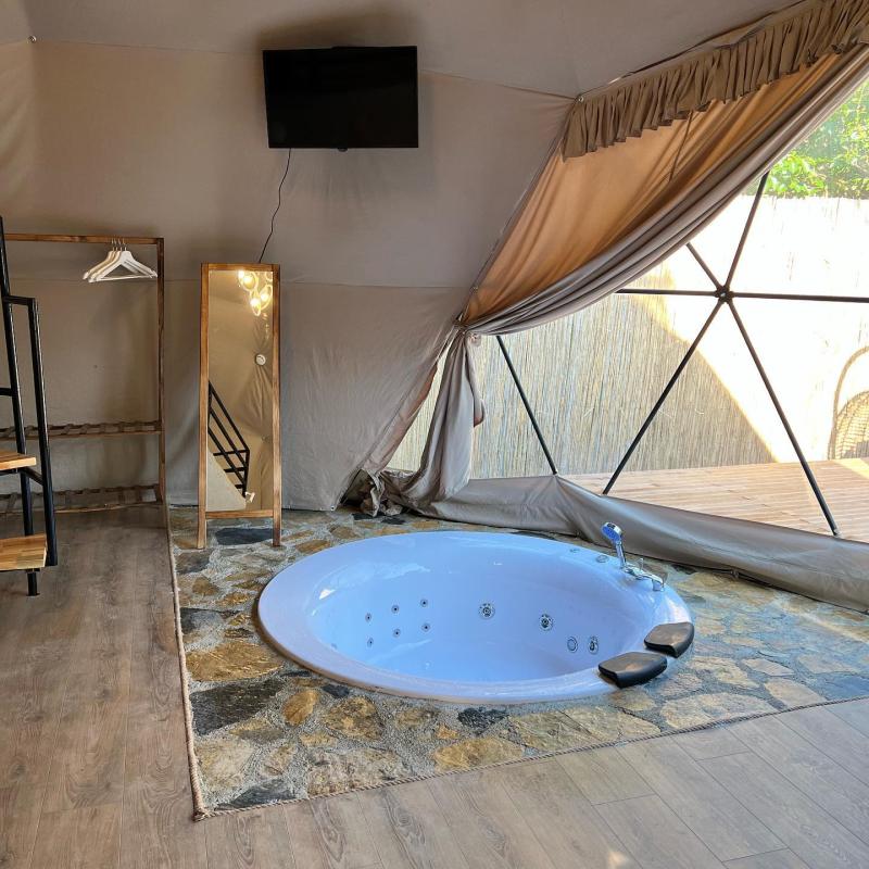 Sapanca’nın doğal atmosferinde yer alan KOD 5413 Havuzlu Glamping Otel, misafirlerine doğa ile iç içe konforlu bir deneyim sunuyor. Özel havuz, jakuzi ve geniş bahçe gibi imkanlarla rahatlamanızı sağlarken, açık hava sineması ve ateş çukuru gibi keyifli aktivitelerle tatilinizi zenginleştiriyor. Trekking yapabilir, güneşlenme terasında dinlenebilir ve bahçede hoş vakit geçirebilirsiniz. Otelde özel otopark, ücretsiz internet ve 24 saat açık resepsiyon bulunuyor. İhtiyaç halinde transfer ve özel organizasyon hizmetleri de sunuluyor. Sapanca’da keyifli ve sakin bir tatil için harika bir seçenek.