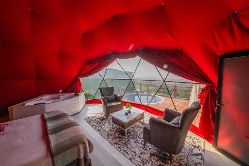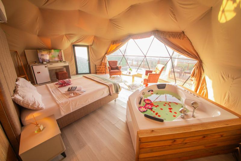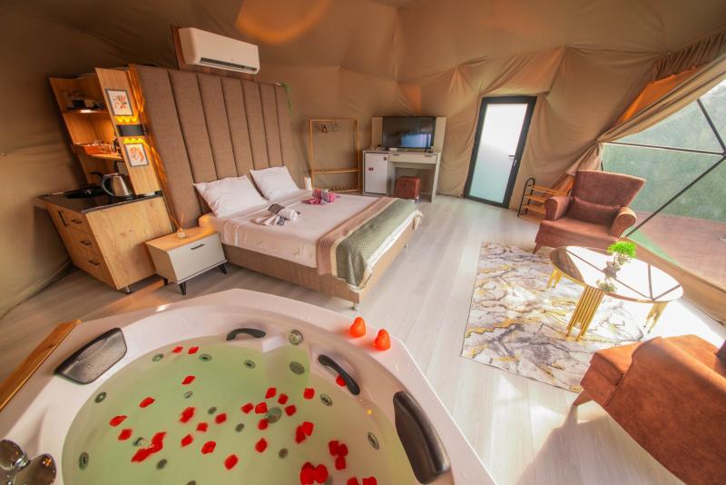 Sapanca'nın eşsiz doğasıyla çevrili glamping konseptimizde, muhteşem manzaralar eşliğinde özel havuz ve jakuzi keyfi sizi bekliyor. Doğayla iç içe, nazik bir dokunuşla konforu birleştiren bu eşsiz deneyimde unutulmaz bir tatil sizi bekliyor. Glamping, kampçılığın konforlu ve lüks bir versiyonu olarak adlandırılabilir ve biz bu deneyimi Sapanca'nın doğal güzellikleriyle harmanlayarak sizlere sunuyoruz. Özel havuz ve jakuzi keyfiyle rahatlayıp günün yorgunluğunu atarken, muhteşem manzaralar eşliğinde huzur dolu anlar yaşayacaksınız. Doğanın içinde geçireceğiniz bu tatilde, şehir hayatının stresinden uzaklaşacak ve tamamen dinleneceksiniz. Glamping konseptimiz, konforu ve doğayla iç içe olma deneyimini bir araya getirerek unutulmaz bir tatil vadediyor. Sapanca'nın benzersiz atmosferinde, özel havuz ve jakuzili glamping birimlerimizde kendinizi özel hissedecek ve yenilenmiş bir şekilde evinize döneceksiniz. Bu eşsiz deneyimi yaşamak ve doğanın kollarında huzur bulmak için sizleri bekliyoruz.