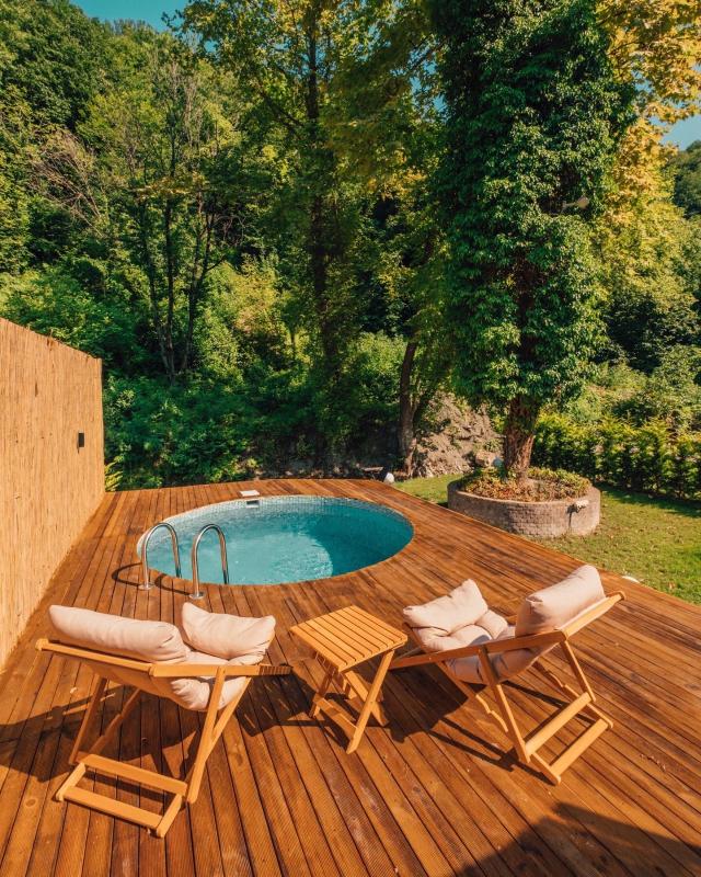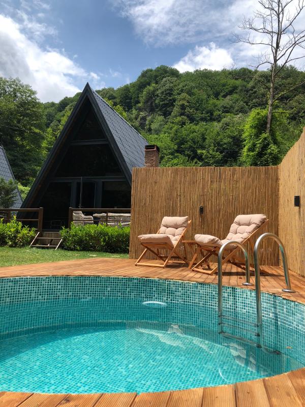 Bungalovumuz, muhteşem orman manzarasıyla çevrili, huzur dolu bir doğa ortamında yer alıyor. Özel havuzu, şömini ve ateş çukuruyla konuklarımıza sıcak ve romantik bir atmosfer sunuyor. Tam kapasiteli mutfağımızda dilediğiniz gibi yemekler hazırlayabilir, mangal alanında keyifli vakit geçirebilirsiniz. Doğanın içindeki bu saklı cennette, temiz havanın tadını çıkaracak, stres ve gürültüden uzaklaşarak dingin bir tatil geçireceksiniz. Burada gevşeyip yenilenirken, doğayla iç içe bir konaklama deneyimi yaşayacak, huzurunuzu bulacaksınız. Özel havuzun keyfini çıkarırken ormanın huzur veren manzarasına karşı dinlenecek, ateş çukurunda sevdiklerinizle keyifli sohbetler edebileceksiniz. Doğanın sesleri eşliğinde huzur bulacağınız bu bungalov, unutulmaz bir konaklama deneyimi sunuyor.