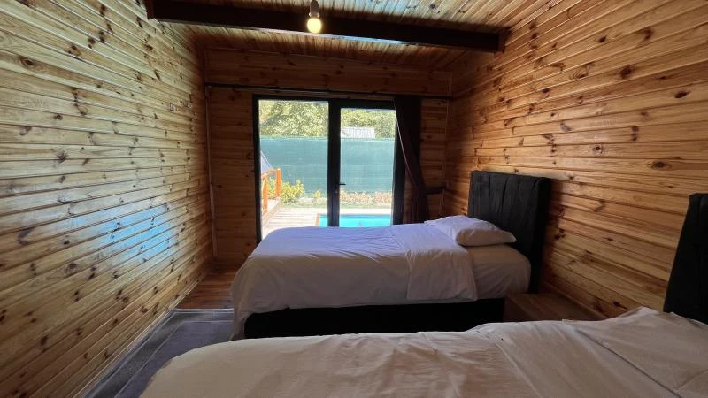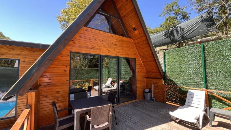 Bungalovumuz, doğanın yeşil dokusunun içinde konumlanmış olup huzurlu bir atmosfer sunuyor. Özel havuzu ile serinlemenin tadını çıkarırken, şöminenin sıcaklığında keyifli anlar yaşayabilirsiniz. Ayrıca, mangal alanı da dışarıda keyifli yemekler hazırlamanıza olanak sağlıyor. Doğanın içindeki bu özel konaklama biriminde, misafirlerimize dinlendirici bir tatil deneyimi sunmayı amaçlıyoruz. Eşsiz manzara eşliğinde jakuzide gevşeyerek veya havuzda serinleyerek rahatlamanın yanı sıra, çevredeki doğa yürüyüşleriyle de huzur dolu bir tatil geçirebilirsiniz. Her ayrıntısı özenle düşünülmüş olan bungalovumuzda, konforlu ve keyifli bir konaklama deneyimi sizi bekliyor.