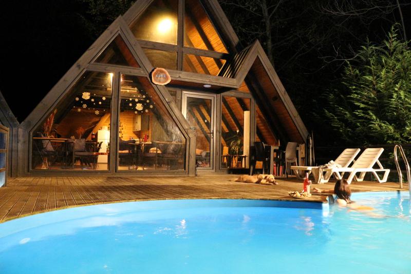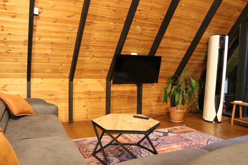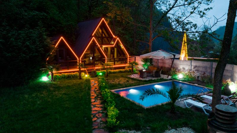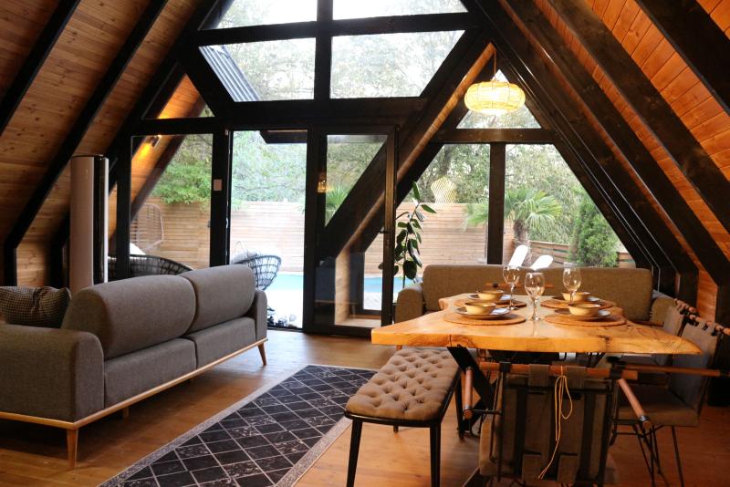 Sapanca'da doğanın içinde huzuru bulacağınız bir kaçamak için özel olarak tasarlanmış bungalovumuz, ısıtmalı havuzu, jakuzisi ve şöminesiyle rahat ve lüks bir konaklama deneyimi sunuyor. Tam donanımlı mutfak, kendi yemeklerinizi hazırlayabileceğiniz ve mangal keyfi yapabileceğiniz bir ortam sunarken, doğa ile iç içe olmanın tadını çıkarabilirsiniz. Konforlu yataklarında dinlenirken, doğanın seslerini dinleyebilir ve manzarasının güzelliğinin keyfini sürebilirsiniz. Isıtmalı havuz, her mevsim keyifli bir yüzme deneyimi sunarken, jakuzi ise yorgunluğunuzu atmanıza yardımcı olacak bir seçenek sunuyor. Akşamları şöminenin başında sıcak bir içecek eşliğinde vakit geçirerek, yıldızların altında romantik anlar yaşayabilirsiniz. Bungalovun sunduğu bu huzur dolu atmosfer, ailenizle ya da sevdiklerinizle geçireceğiniz unutulmaz anılar biriktirmenizi sağlayacak. Doğa yürüyüşlerine çıkabilir, çevredeki doğal güzellikleri keşfedebilir veya sadece bungalovun keyfini çıkararak ruhunuzu dinlendirebilirsiniz. Bu sıcak ve samimi ortam, her anınızı özel kılmak için tasarlandı.