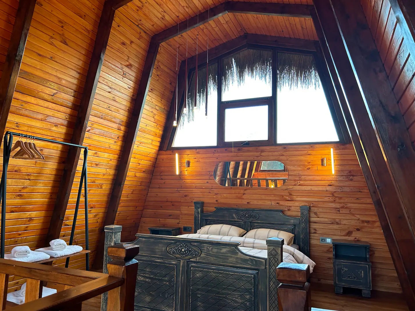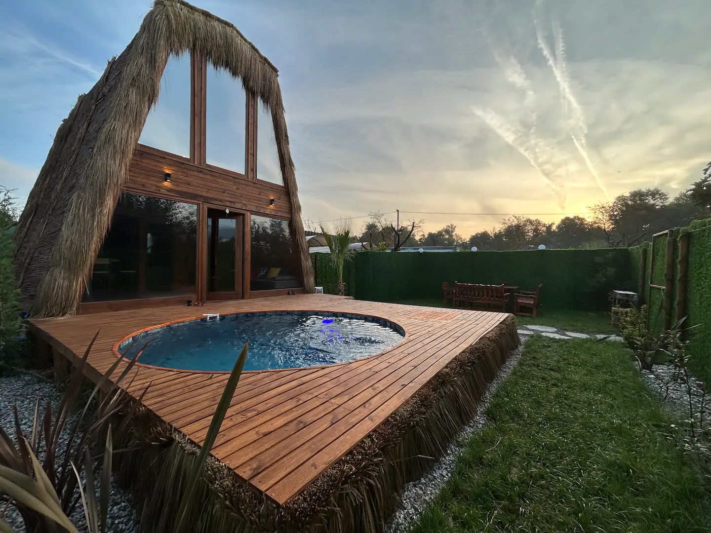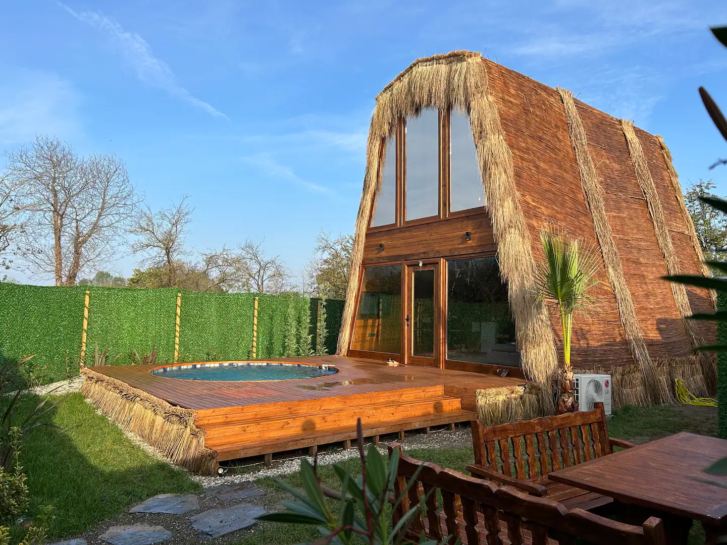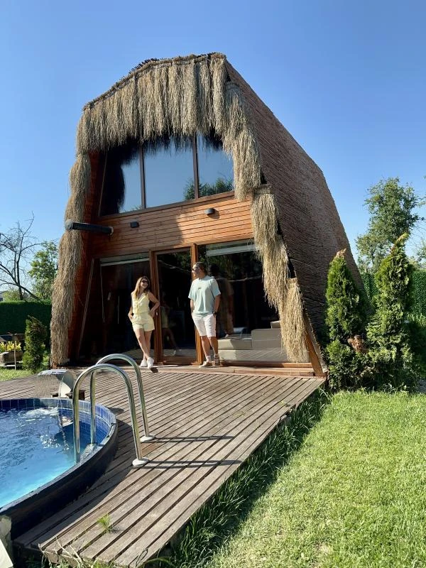KOD 5428 Sapanca Havuzlu Bungalov Otel, doğanın içinde bohem tarzda dizayn edilmiş geniş ve konforlu bir konaklama deneyimi sunuyor. 80 m² büyüklüğündeki bungalovda, iki adet çift kişilik yatak ile en fazla 4 kişilik konaklama imkanı sağlanıyor. Bungalov, özel ısıtmalı havuzu ve şöminesi ile her mevsim keyifli bir tatil sunarken, bahçe ve havuz manzarası ile doğayla iç içe huzur dolu bir ortam sunuyor. Otel, misafirlerine ücretsiz Wi-Fi, TV, klima, gardırop, kanepe ve yemek masası gibi konfor sağlayan imkanlar sunuyor. Banyoda saç kremi, şampuan, havlu seti ve tek kullanımlık terlikler gibi tüm ihtiyaçlar düşünülmüş. Yemek hazırlamak isteyenler için mini dolap, yemek takımı ve çaycı mevcut. Ayrıca bahçe mobilyaları ve mangal alanı, açık havada keyifli vakit geçirmenize imkan tanıyor. Özel otoparkı ve doğa manzarası ile huzurlu bir kaçamak arayanlar için ideal bir seçenek.