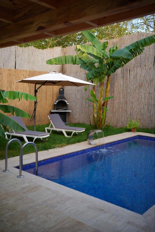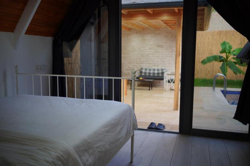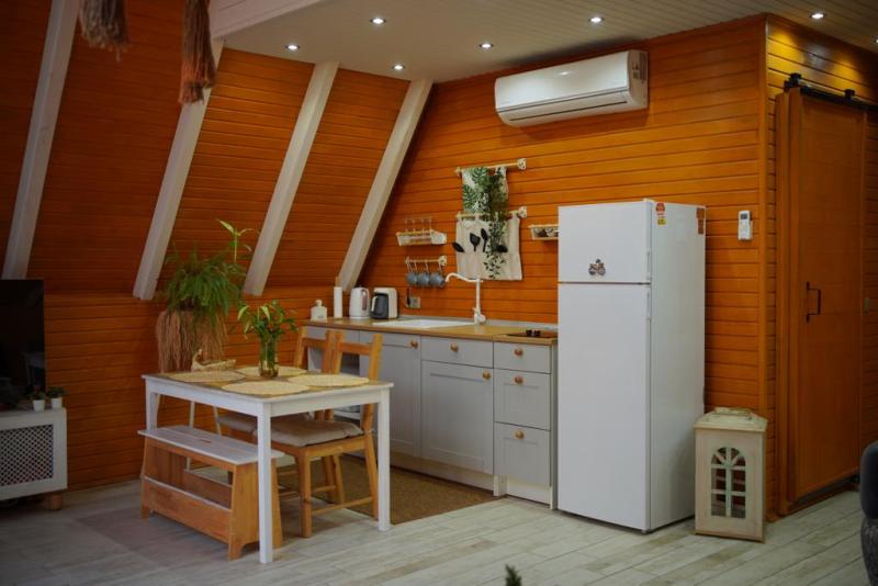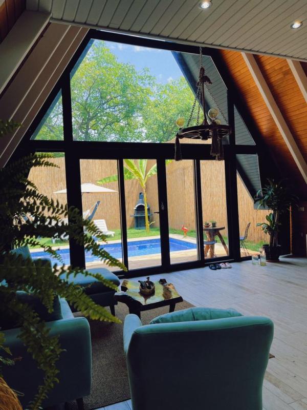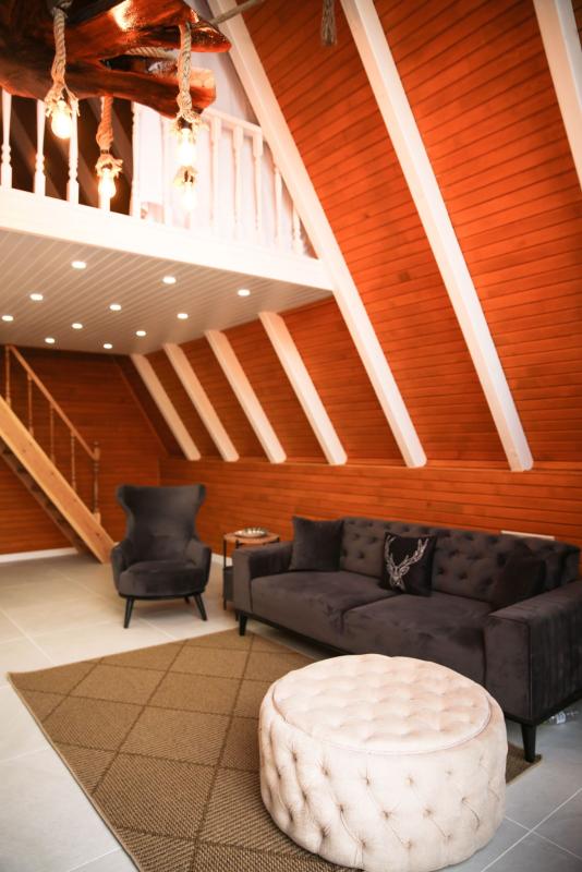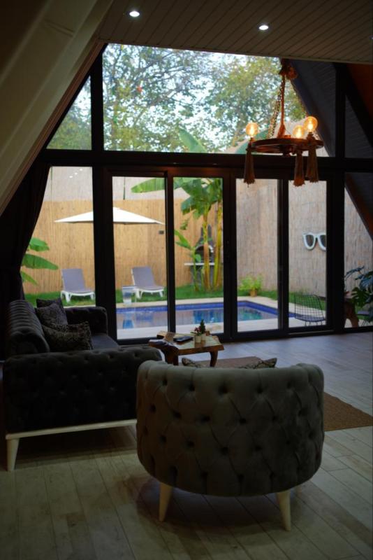 KOD 5429, Sapanca’da yer alan havuzlu ve jakuzili bungalov otel, doğayla baş başa kalmak isteyen misafirlerine eşsiz bir tatil deneyimi sunuyor. 75 metrekarelik geniş odaları, ahşap zeminleri ve modern tasarımıyla hem konfor hem de huzur vadediyor. Her odada klima, şömine, jakuzi ve yerden ısıtma gibi konfor unsurları bulunuyor. Özel otopark ve ücretsiz internet hizmeti sayesinde rahat bir konaklama imkanı sunulurken, Netflix ve TV gibi medya özellikleriyle eğlenceli zaman geçirebilirsiniz. Bungalovda yer alan ısıtmalı havuz ve bahçe manzaralı geniş teras, doğanın tadını çıkarmak için ideal alanlar sunuyor. Mutfak kısmında buzdolabı, kahve makinesi, ocak ve yemek takımı gibi tüm detaylar düşünülmüş. Açık havada yemek masası ve mangal alanı ise dış mekanda keyifli zaman geçirmenize olanak tanıyor. İki çift kişilik yatak ve ekstra yatak seçenekleri ile bu bungalov, en fazla 7 yetişkinin konaklayabileceği geniş bir alan sağlıyor.