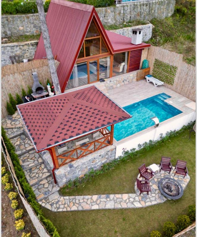 Sapanca'da yer alan özel havuzlu bungalovumuz, 4 kişi konaklama kapasitesine sahip olup, tam donanımlı mutfak, ücretsiz Wi-Fi ve otopark gibi modern olanaklar sunmaktadır. Yerden ısıtma sistemi ile konforlu bir ısınma sağlayan bungalovumuz, Sapanca Gölü'nün muhteşem manzarasını gözler önüne serer. İç mekanlarda şömine ve dış mekanlarda ateş çukuru ile sıcak ve samimi anlar yaşarken, bahçe mobilyaları ve barbekü alanında keyifli vakit geçirebilirsiniz. Hem doğayla iç içe hem de lüks ve konforlu bir tatil deneyimi arayanlar için ideal bir seçenektir.