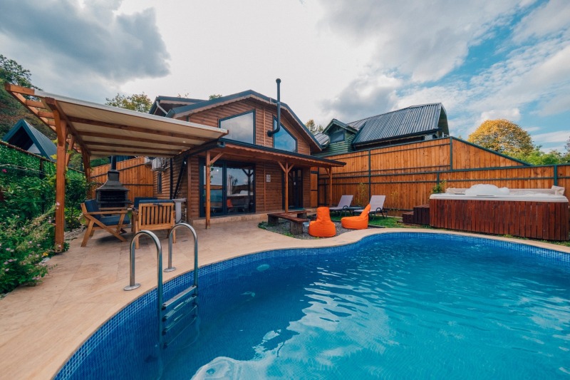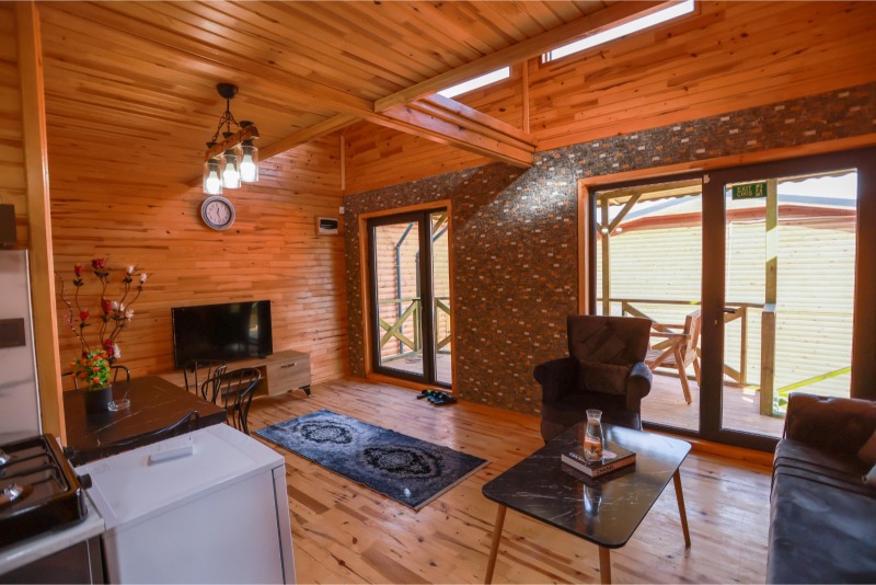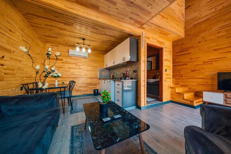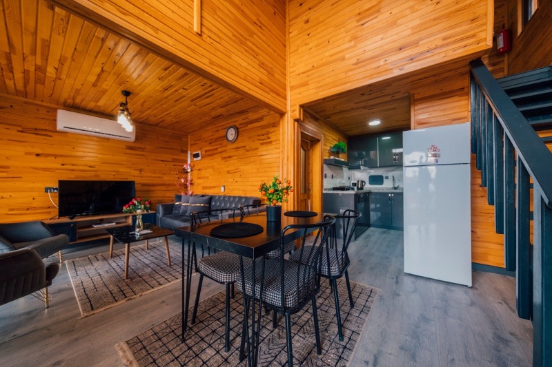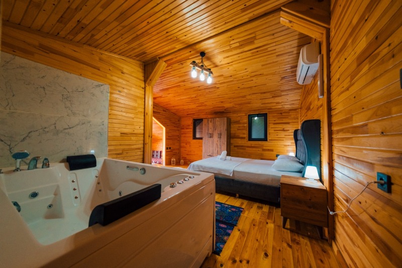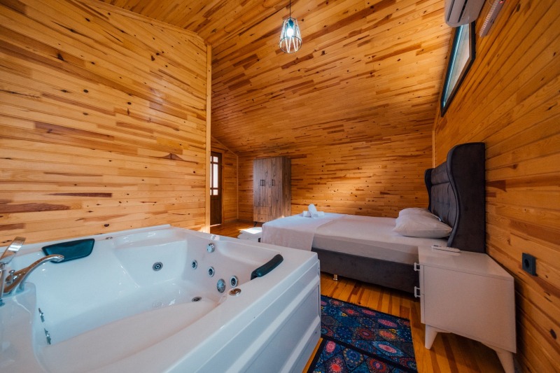 Siz ve sevdikleriniz için özel bir kaçış rotası… Sapanca’nın büyüleyici doğasının tam kalbinde, sadece size ait bir cennette buluşuyoruz. Bu bungalov otel, doğayla iç içe, huzurun ve lüksün el ele geçtiği bir ortamda, unutulmaz bir deneyim sunuyor.Etrafı tamamen korunaklı, gizliliğinize saygı duyan, yemyeşil bir bahçe. Şömine ateşinin sıcacık dokunuşunu hissederken, pencerenizden görünen orman manzarası ruhunuzu dinlendiriyor. Sabahları kuş sesleriyle uyanmak, her nefeste temiz orman havasını içinize çekmek… Burada her şey, doğanın içinde kendinizi bulmanız için hazır.Bu bungalovun sunduğu her detayda, konfor ve mahremiyet ön planda. Özel müstakil bahçenizde dilediğiniz gibi keyif yapabilir, geniş alanlarda ailenizle ve dostlarınızla unutulmaz anlar paylaşabilirsiniz. Bahçede bulunan mangal ve barbekü alanı, sevdiklerinizle sıcak bir akşam yemeği için sizi bekliyor. Ayrıca, yıldızların altında sohbet ederken ateş çukurunun etrafında toplanmak, anılarınızı renklendirecek.Evinizin sınırları içerisinde yalnızca size özel korunaklı bir havuz ve jakuzi bulunuyor. İster gündüz ister gece, bu lüks detaylarda kendinizi şımartabilirsiniz. Jakuzide geçirdiğiniz dakikalar, doğanın tam ortasında adeta bir SPA deneyimi sunuyor. Bu rahatlatıcı konfor, tüm yorgunluğunuzu alıp götürmeye hazır.Bu bungalov, geniş aileler ya da arkadaş grupları için de mükemmel bir seçenek. 6 kişiye kadar konaklama imkanı sunan odalarıyla, herkesin rahat edebileceği bir yer. WiFi bağlantısı sayesinde doğanın kalbinde dahi çevrimiçi kalabilir, gerektiğinde işlerinizi de rahatlıkla yürütebilirsiniz. Ayrıca, özel otopark alanı sayesinde ulaşım ve park sorun olmaktan çıkıyor. Sapanca’nın kalbinde, doğanın içinde huzur bulmak ve kendinizi özel hissetmek istiyorsanız, burası tam size göre. Bu bungalovda geçen her gün, unutulmaz bir hikaye yazıyor ve size sadece tadını çıkarmak kalıyor.