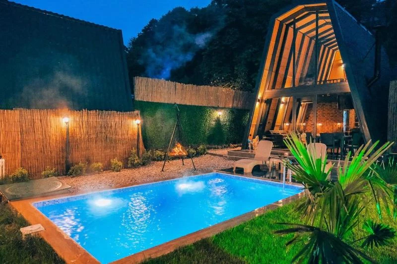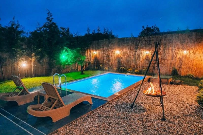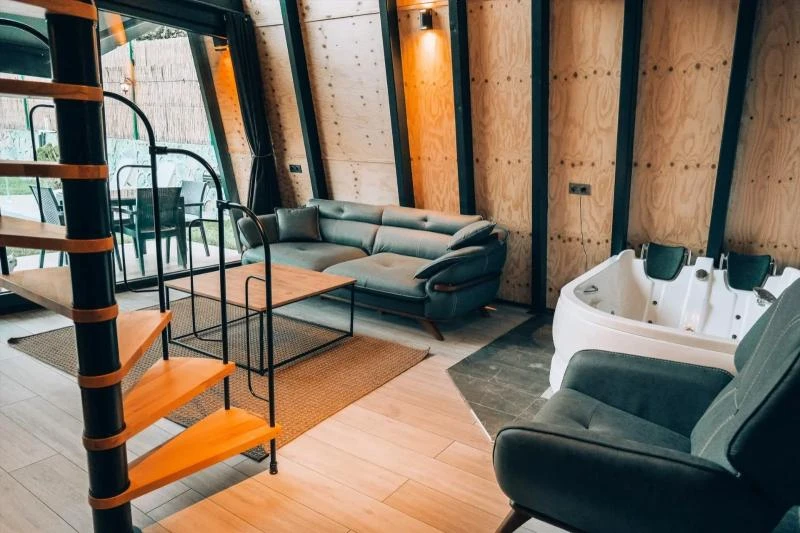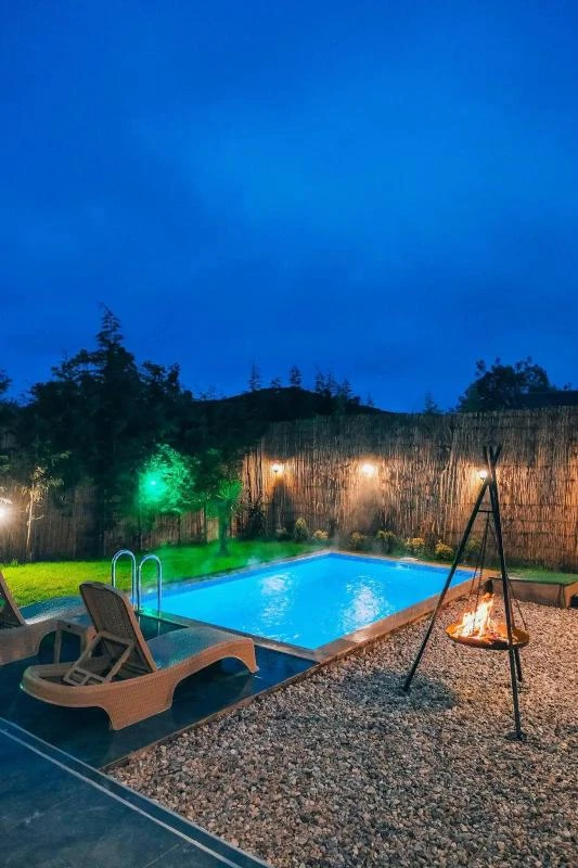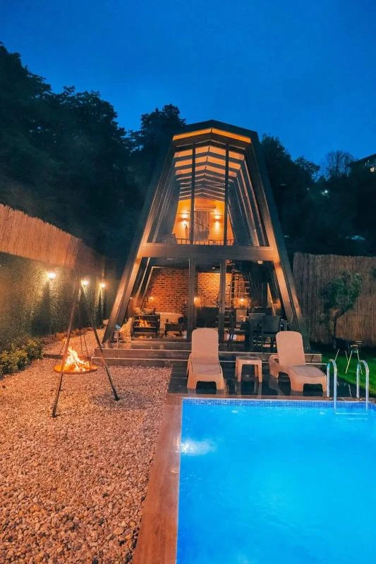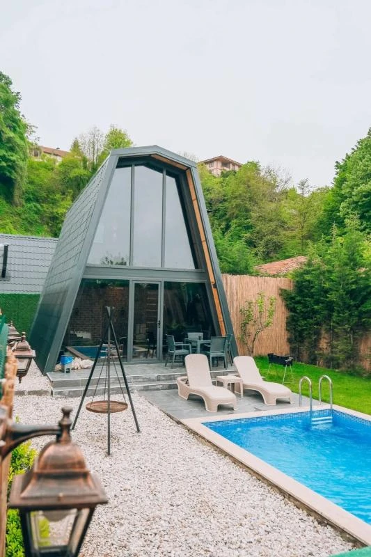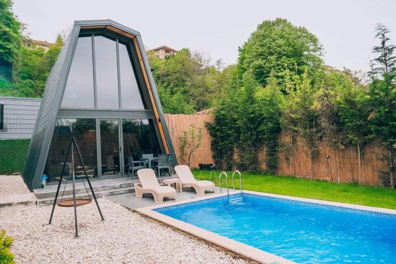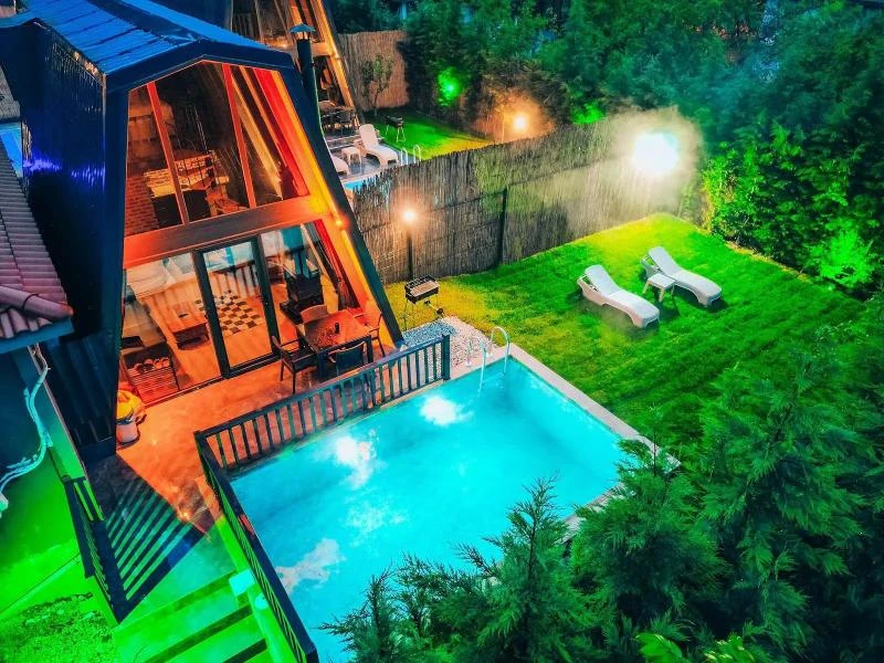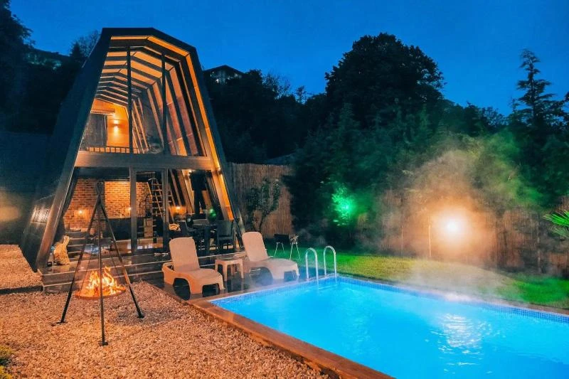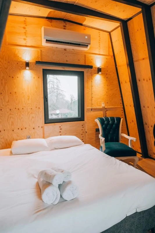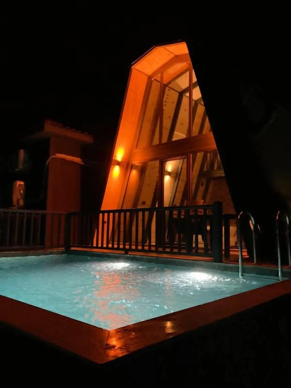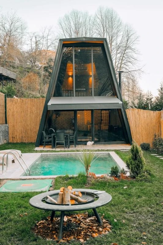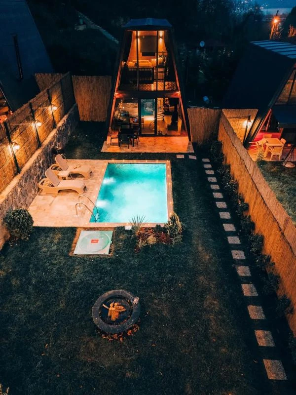 Sapanca’nın eşsiz doğasında konumlanan bu özel tesis, konuklarına hem huzuru hem de modern konforu bir arada sunuyor. Doğayla iç içe, şık ve konforlu bungalovlarda; ısıtmalı havuz, şömine keyfi ve jakuzi gibi ayrıcalıklı imkanlar bulunuyor. Her ayrıntısı özenle düşünülmüş konaklama birimlerinde; yıl boyunca kullanılabilen sıcak havuz, şömine için odun temini, Wi-Fi, klima, televizyon yayını, 7/24 acil durum desteği, araç ve alışveriş kuryesi gibi hizmetler misafirlere sunuluyor. Geniş bahçesi ve özel barbekü alanları ise tatilinize keyifli anlar katıyor. Konumu sayesinde Sapanca Gölü’ne ve çevredeki yürüyüş yollarına dakikalar içinde ulaşabilirsiniz. Doğanın huzurunu yaşarken, aynı zamanda şehir merkezine de yakın olmanın avantajını hissedersiniz.