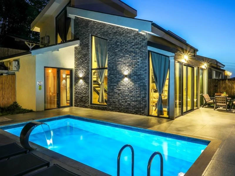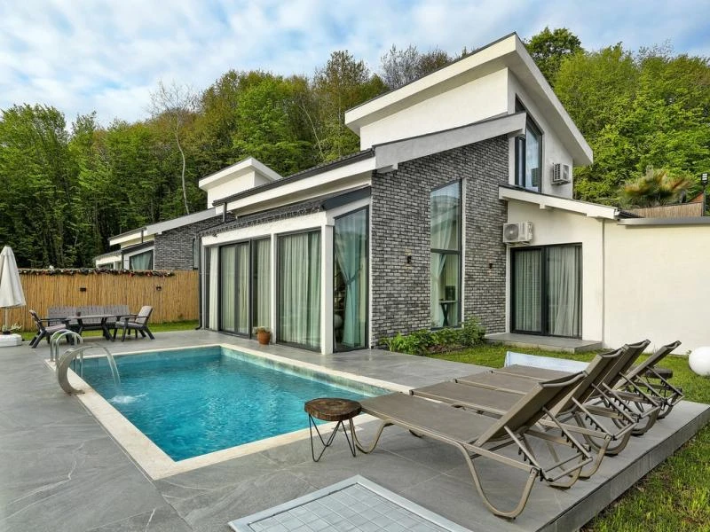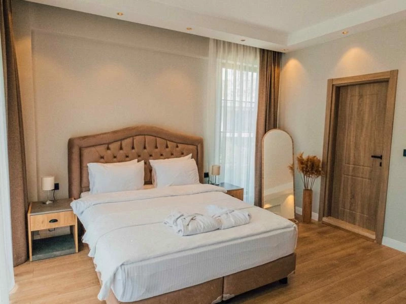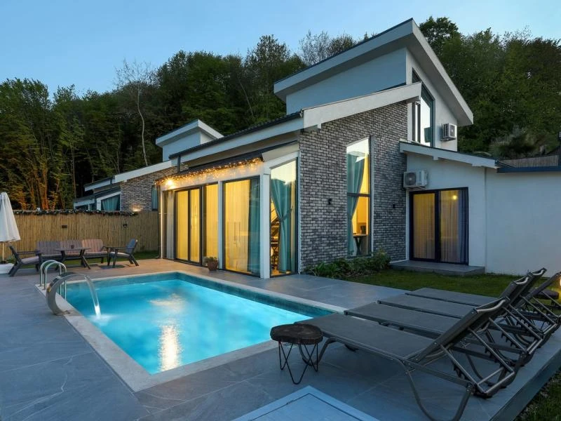 Sapanca’nın huzurlu atmosferinde yer alan bu özel villa konsepti, geniş ve modern yaşam alanlarını doğa manzarasıyla buluşturuyor. Her villada ısıtmalı özel havuz, ferah bahçe, tam donanımlı mutfak ve konforlu oturma alanı bulunuyor. Üç veya dört yatak odalı seçenekler, aileler ve arkadaş grupları için ideal bir konaklama sunuyor. Tesis; barbekü alanı, ateş çukuru, hızlı Wi-Fi, özel otopark ve düzenli temizlik hizmeti gibi ayrıcalıklarla misafirlerine eksiksiz bir tatil imkanı sağlıyor. Göl kenarı yürüyüş yollarına ve şehir merkezine yakın konumu sayesinde hem doğanın huzurunu hem de kolay ulaşımı bir arada sunuyor.