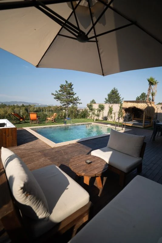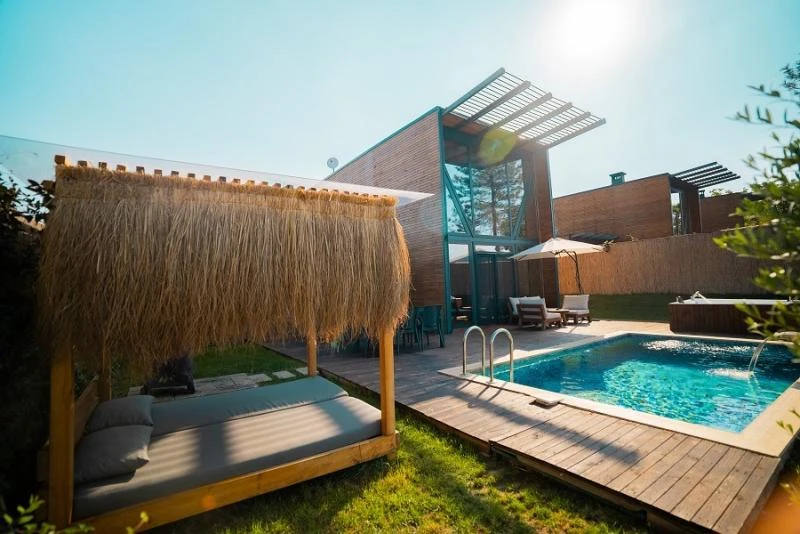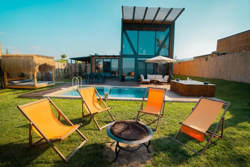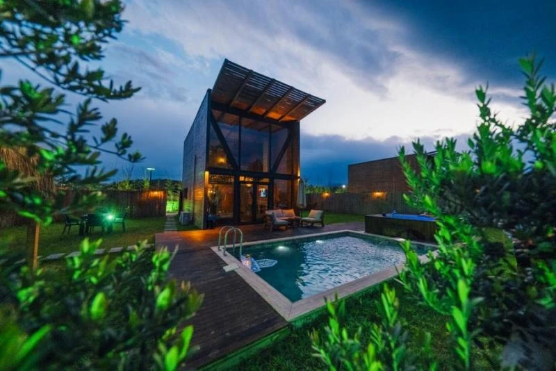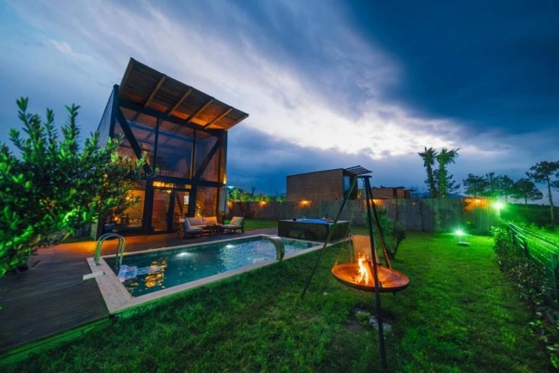 Sapanca’nın eşsiz doğasında konumlanan bu özel konaklama tesisi, misafirlerine hem huzuru hem de modern konforu bir arada sunar. Göl manzarasına hakim konumu, özenle tasarlanmış 1+1 ve 2+1 villalarıyla, her mevsim keyifli bir tatil deneyimi yaşatır. Villaların her biri yerden ısıtma, şömine, klima ve tam donanımlı mutfak gibi konfor unsurlarıyla donatılmıştır. Geniş pencereler doğal ışığı içeriye davet ederken, modern dekorasyon ve ferah yaşam alanları rahat bir konaklama ortamı sağlar. Dış mekan olanakları arasında dört mevsim kullanılabilen özel havuz, jakuzi, barbekü alanı ve ateş çukuru yer alır. Bu alanlar, hem dinlenme hem de sosyalleşme fırsatları sunarak konaklamanızı zenginleştirir. Doğanın huzuru ile lüks detayların buluştuğu bu tesis, ister kısa süreli bir kaçamak ister uzun soluklu bir tatil planlayan misafirler için ideal bir seçim.