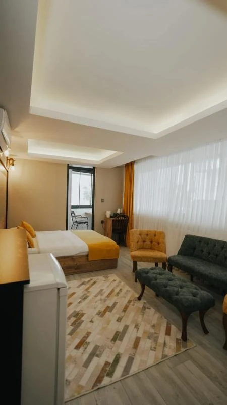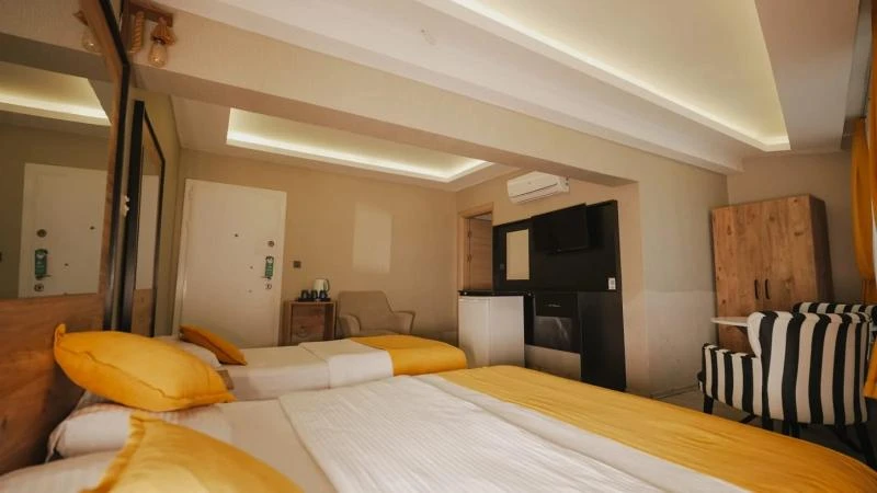 Denize sıfır konumuyla öne çıkan butik otel, misafirlerine modern ve konforlu bir tatil imkânı sunuyor. Sade ve şık dekorasyona sahip odaların tamamı deniz manzaralı olup, içerisinde klima, oturma alanı, LED TV, mini buzdolabı ve su ısıtıcısı bulunuyor. Banyolar ise duş, saç kurutma makinesi, havlu ve temel banyo malzemeleri ile donatılmış. Tesiste sabahları özenle hazırlanan kahvaltılar servis ediliyor. Misafirler ayrıca kapalı ve açık restoran seçenekleriyle öğle ve akşam yemeklerini de değerlendirebiliyor. Konumu itibarıyla avantaj sağlayan otel, mavi bayraklı plaja yürüme mesafesinde ve çevresindeki eğlence alanlarına oldukça yakın. Oda özelliklerinde parke zemin, balkon veya teras, gardırop, LCD TV ve temel kişisel eşyalar için detaylar düşünülmüş. Çevredeki müze ve kültürel alanlara kolay ulaşım sağlanırken, denize sıfır konumuyla özellikle yaz tatilleri için keyifli bir alternatif oluşturuyor.