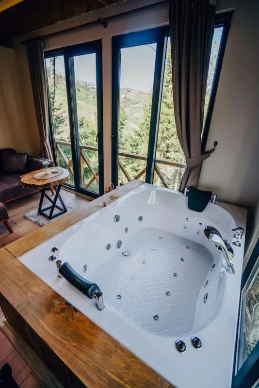 Ormanın huzurlu atmosferiyle çevrili bu tesis, doğayla iç içe konumuyla misafirlerine dingin bir tatil ortamı sunuyor. Sessiz ve yeşillikler içinde yer alan bungalovlarda modern konfor ile doğal yaşam bir arada bulunuyor. Her konaklama biriminde klima, oturma alanı, televizyon, mini mutfak veya mutfak, yemek alanı ve özel banyo gibi olanaklar mevcut. Bornoz, terlik gibi ince detaylarla rahatlık artırılırken; ücretsiz Wi-Fi ve otopark imkânı da sağlanıyor. Misafirler, güne zengin kahvaltı seçenekleriyle başlayabiliyor. Açık büfe ve kontinental kahvaltının yanı sıra gün boyu farklı yemek alternatifleri de sunuluyor. Rahatlamak isteyenler için jakuzili alanlar, teras ve piknik köşeleri bulunurken; doğayı keşfetmek isteyenler için yürüyüş rotaları ve çevre gezileri düzenleniyor. Tesis, hem aileler hem de çiftler için keyifli bir tatil imkânı sunuyor. Yüksek memnuniyet oranına sahip olması, doğa ile iç içe huzurlu bir tatil arayan misafirler için güven veren bir tercih haline getiriyor.