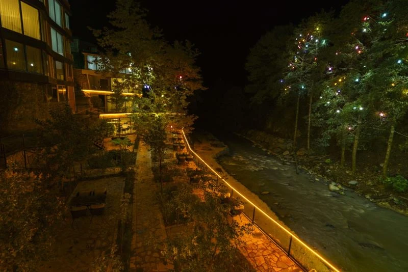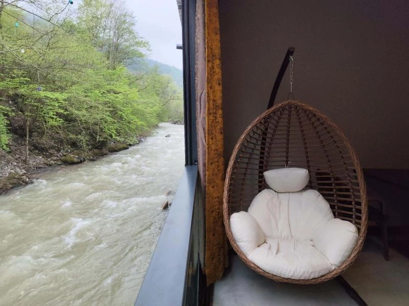 Karadeniz’in serin rüzgârlarını hissedebileceğiniz konumuyla ön plana çıkan tesis; doğanın içinde, dere kenarında; lüks tasarımı, modern altyapısı ve huzurlu ortamıyla konuklarına eşsiz bir deneyim sunuyor. Tesis, geniş oda seçenekleriyle her türlü ihtiyacı karşılarken standart odalardan, balkonlu ya da teraslı suitlere ve aile villalarına kadar çeşitli konaklama birimleri misafirlerimizi bekliyor. Zarif dekorasyonlu ve rahatlatıcı oturma alanlarına sahip odalarda, kaliteli yataklar ve özel banyolar gibi konfor unsurları öne çıkıyor. Bazı suit ve villalarda ek konfor arayanlar için özel tasarımlı dinlenme köşeleri, teraslar veya salıncaklı oturma alanları bulunuyor. Ücretsiz Wi-Fi erişimi, ücretsiz otopark imkânı ve 7/24 açık resepsiyon tesisin sunduğu temel hizmetler arasında yer alırken hızlı check-in / check-out işlemleri de misafirlerin hizmetine sunuluyor. Tesis, çamaşırhane, kuru temizleme, kurye ve ütü hizmetleri, misafirlerin konforunu destekleyen diğer detaylar ile başlı başına donatılmış. Elektrikli araç şarj istasyonu, toplantı odası, ve hediye dükkanı gibi ek tesis içi olanaklar da mevcut. Ayrıca bahçe ve teras gibi ortak kullanım alanları sayesinde açık havada vakit geçirmek isteyen misafirler için cazip imkânlar sunuluyor. Yemek bölümünde, tesis bünyesindeki restoranda yöresel ve uluslararası tatlar eşliğinde zengin bir kahvaltı servisiyle güne başlanıyor. Öğle ve akşam öğünlerinde de sıcak ve lezzetli alternatifler sunuluyor. Konum olarak Trabzon Havalimanı'na ve şehir merkezine yakın bir noktada yer alması, hem doğayla iç içe vakit geçirmek isteyenlere hem de ulaşımı kolay bir konaklama arayanlara uygun bir seçenek yaratıyor.