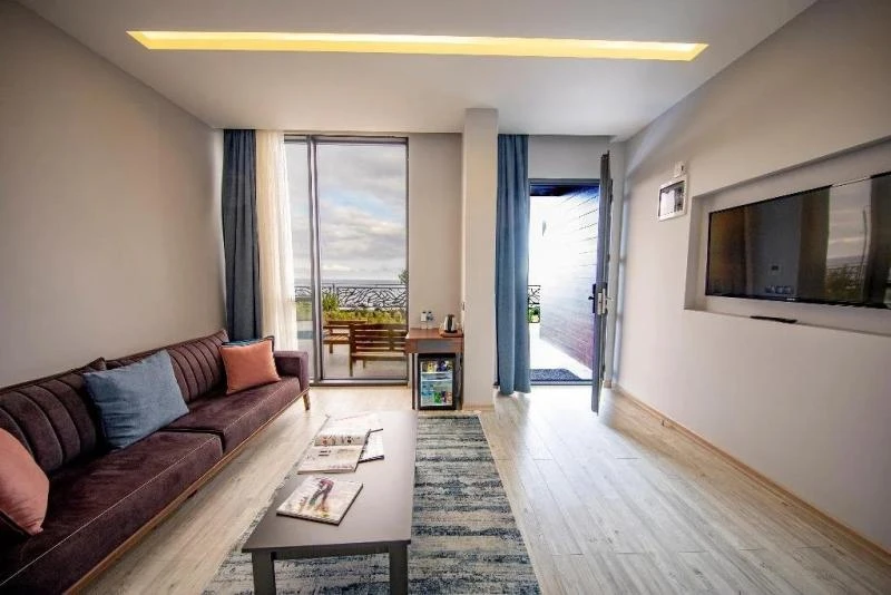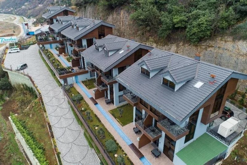 Doğanın kalbinde, Karadeniz’in serin rüzgârını ve eşsiz manzarasını hissedebileceğiniz bir noktada konumlanan bu villa otel; modern konforu ve huzurlu atmosferiyle öne çıkıyor. Villalardan oluşan yapısı sayesinde her misafir için ayrıcalıklı bir alan sunan tesis, kalabalıktan uzak, doğayla iç içe bir tatil isteyenlere hitap ediyor. Odalar geniş, ferah ve modern şekilde dekore edilmiş olup hem aileler hem de çiftler için ideal. Her odada konforlu yataklar, klima, ücretsiz WiFi, minibar ve özel banyo gibi tüm ihtiyaçlar düşünülmüş. Villaların bazılarında ise özel teras veya bahçe alanı bulunuyor. Bu sayede misafirler günün her anında yeşilin huzurunu ve denizin mavisini birlikte yaşayabiliyor. Tesisin restoranında sabahları bölgeye özgü tatların da bulunduğu zengin kahvaltı seçenekleri sunulurken, akşamları deniz manzarasına karşı hazırlanan özel menülerle unutulmaz yemek deneyimleri yaşatılıyor. Bahçe alanında kahve keyfi yapmak, terasta gün batımını izlemek ya da dinlenme köşelerinde doğayla bütünleşmek isteyen misafirler için her ayrıntı özenle düşünülmüş. Ek olarak, ücretsiz otopark, 7/24 resepsiyon hizmeti, havaalanı transferi ve günlük temizlik gibi olanaklar misafirlerin konforunu artırıyor. Hem kısa süreli tatillerde hem de uzun konaklamalarda tercih edilebilecek bu tesis; sakinliği, manzarası ve şıklığıyla öne çıkıyor.