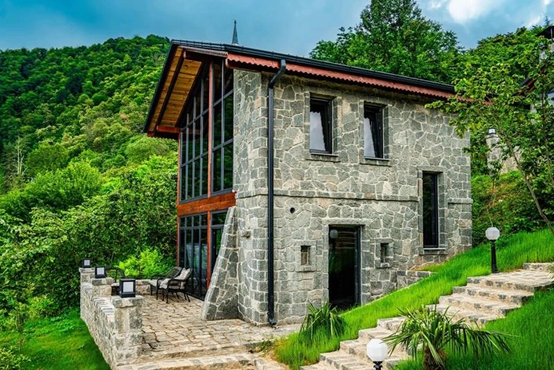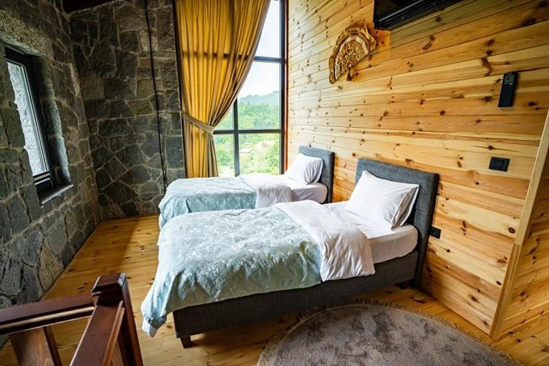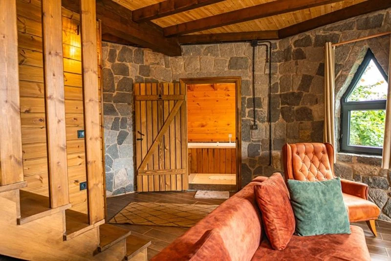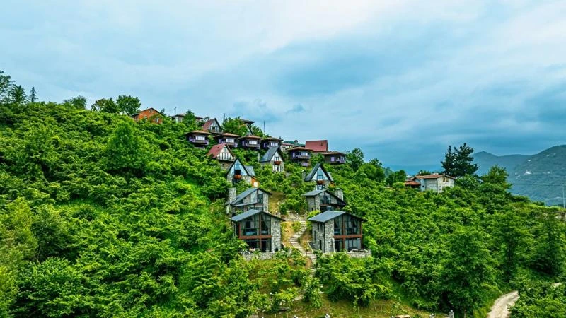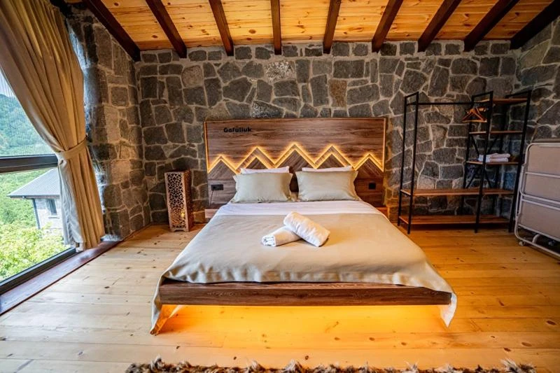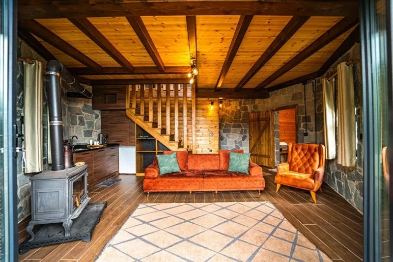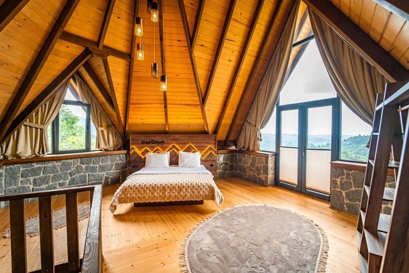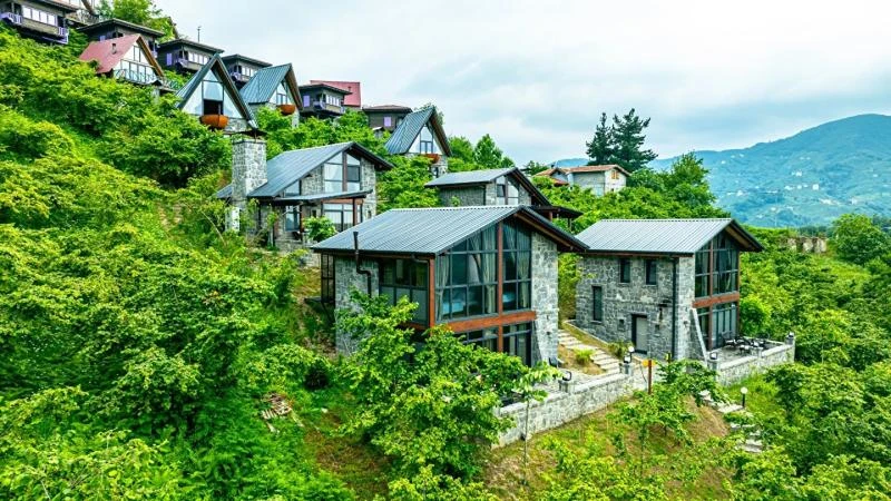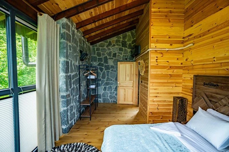 Karadeniz’in dağ yamaçlarında, taş-ahşap mimarili bungalov ve suitlerden oluşan bu tesis; doğa/vadi manzarası, teras-balkon alanları ve şömine detaylarıyla “sakin kaçamak” arayan çiftlerden kalabalık ailelere kadar geniş bir kitleye hitap ediyor. Tesis genelinde Wi-Fi, otopark, ısıtma/klima gibi temel konforlar mevcut; seçili ünitelerde tam donanımlı mutfak ve jakuzi seçenekleri görülüyor. Çocuklar için bahçe/oyun alanı ve yöresel kahvaltı-yeme içme imkânları da konaklamayı tamamlıyor. Kısacası, şehirden uzaklaşıp manzarayı ön plana alan, konforu doğayla dengeleyen bir adres.