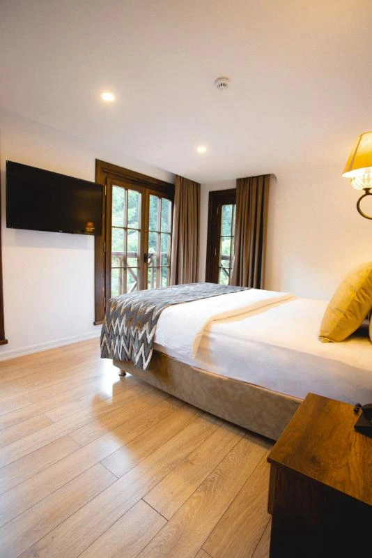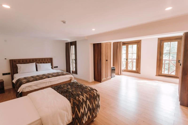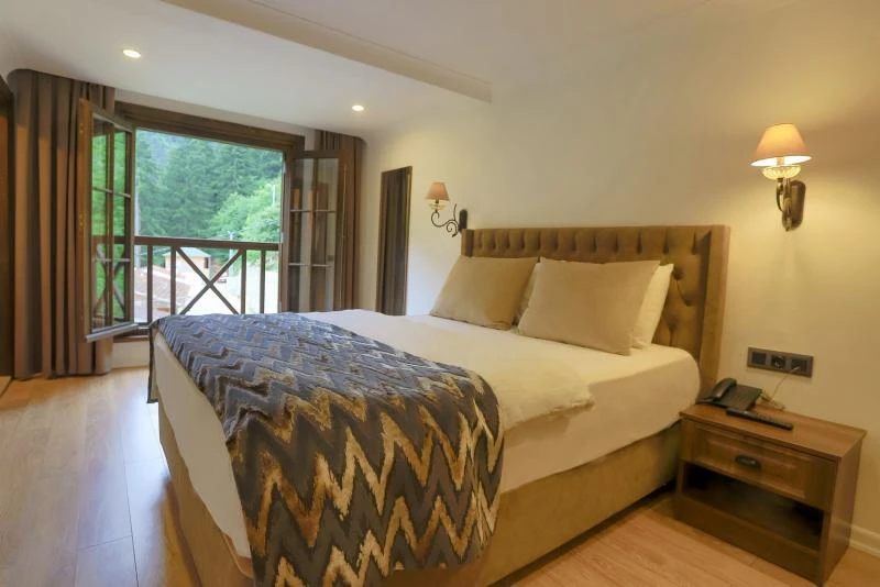 Yeşilin binbir tonuna bürünmüş dağların arasında, sessizliğin ve huzurun buluştuğu özel bir noktada konumlanan bu tesis, doğayı hissetmek isteyenler için ayrıcalıklı bir adres. Tarihi yapılarla çevrili bölgede, misafirlere sadece konaklama değil, kültürel bir yolculuk da sunuyor. Odalar, modern tasarım ile doğallığın uyumunu yansıtırken, her ayrıntıda sıcaklık ve konfor ön planda tutulmuş. Güne, kuş sesleriyle ve ormanın serin esintisiyle başlamak; akşamları yöresel tatların zenginliğiyle donatılmış sofralarda vakit geçirmek unutulmaz bir deneyim yaratıyor. Şehirden uzaklaşıp doğanın dinginliğinde yeniden nefes almak, aynı zamanda tarihi mirasın izlerini sürmek isteyenler için burası, gerçek bir sığınak niteliğinde.