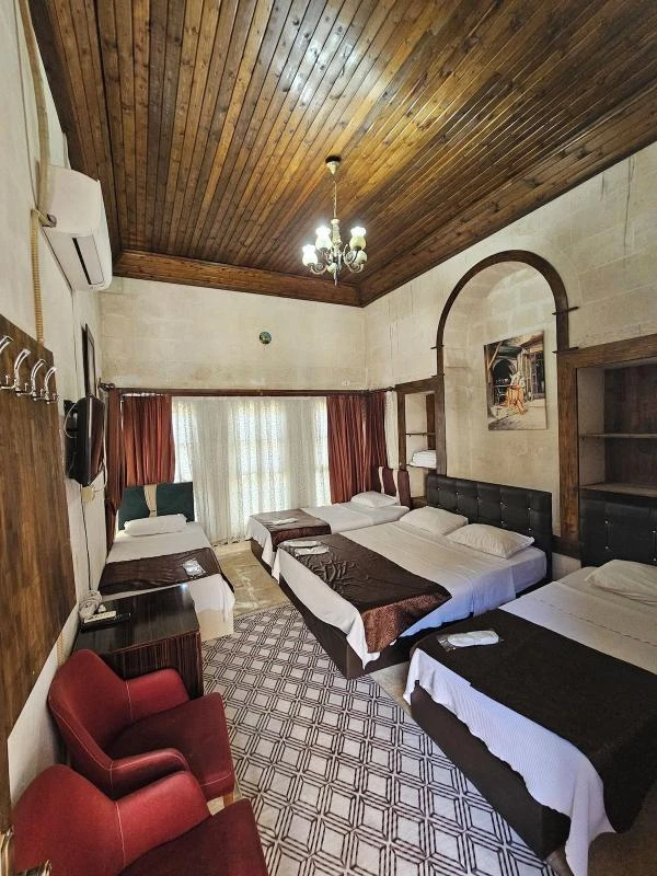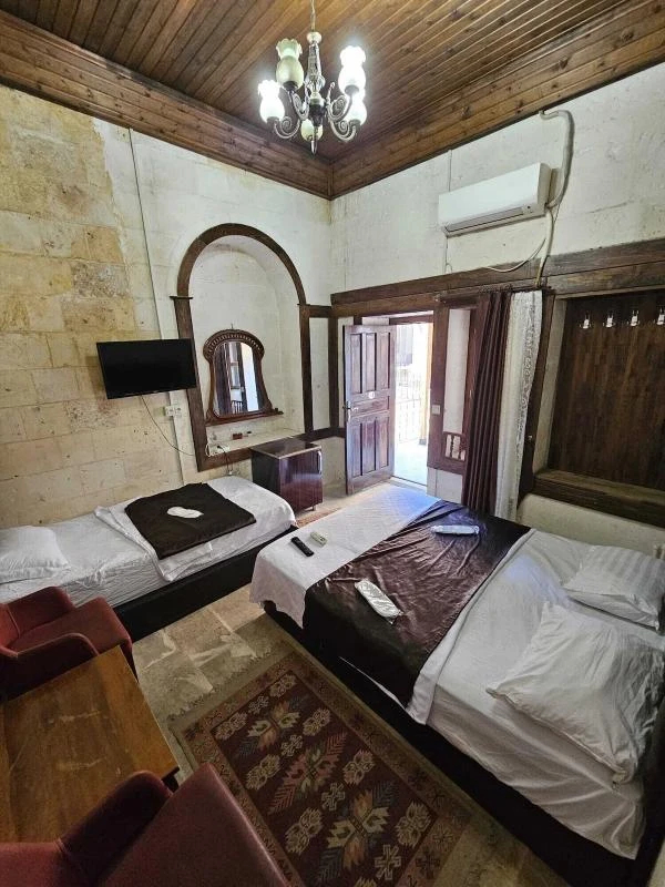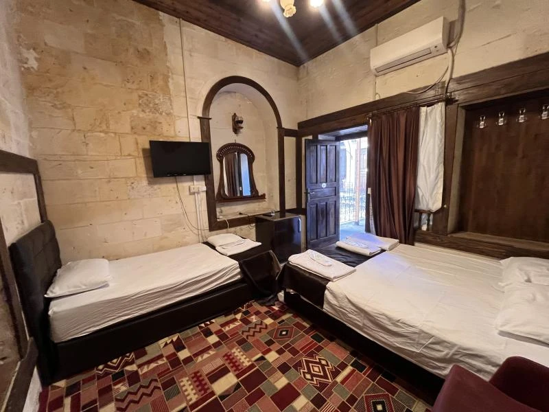 Şanlıurfa’nın tarihi dokusu içinde, Balıklıgöl’e yürüme mesafesinde konumlanmış bu konaklama tesisi; zarif taş cepheli mimarisi, çatı terası, sıcak atmosferi ve mahremiyetiyle misafirlerini tarih ve şehir arasındaki dingin bir köşeye davet ediyor. Her sabah yerel mutfağın taze ürünleriyle hazırlanmış kahvaltı sofralarıyla başlayan gün, şehrin kültürel rotalarına kısa yürüyüşlerle devam edilebilecek ideal bir konuma sahip olmasıyla özgünleşir. Odalar sade ama zevkli dekorasyonla düzenlenmiş; klima, özel banyo, minibar ve ücretsiz Wi-Fi gibi temel konfor unsurları her biri için hazırdır. Çatı terası, şehir ve göl manzarası eşliğinde günün yoğunluğunu unutturan bir mola noktası olarak hizmet verir. Tesis, ücretsiz vale otopark, 24 saat açık resepsiyon ve günlük kat hizmeti gibi hizmetlerle misafirlerinin konforunu ön planda tutar. Evcil hayvan dostu oluşu, özgürce seyahat edenler için dikkate değer bir detay. Ayrıca sigara içilmeyen odalar politikası ve huzurlu çevresiyle şehrin kalabalığından kaçanlara sıcak bir sığınak sunar. Tüm bu özelliklerle, bu konaklama mekanı hem şehir turizmi meraklıları hem de tarih ve sessizlik arayanlar için dengeli bir tercih haline geliyor.