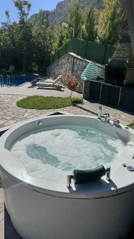 Jakuzi, şömine ve havuz çok keyifliydi. Özel bahçe ve doğa manzarası çok huzur vericiydi. Temizlik, internet ve televizyon da çok iyiydi. 4 kişi rahatça konakladık.