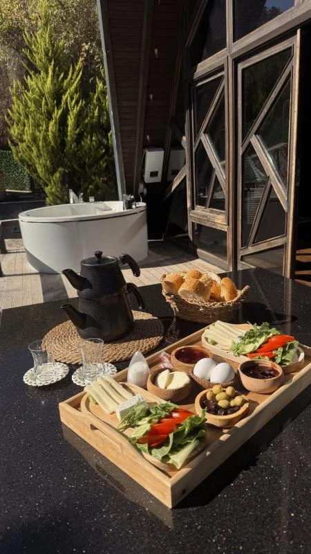 Markete yakın oluşu, jakuzi ve şömine ile romantik bir atmosfer yarattı. Lüks bungalovumuz, doğa manzarasıyla büyüleyici bir deneyim sundu