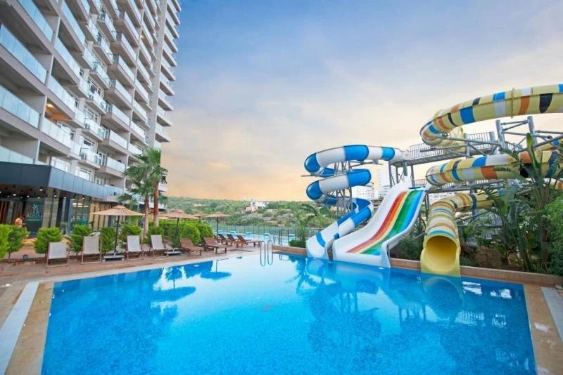 Tatilimiz çok güzel geçti, odalar temiz ve her oda bir balkona bağlı, hemde deniz manzaralı. Plaj otelimize çok yakındı.otelimizde çok güzel 2 yüzme havuzu vardı birinde Aquapark. Spor salonu ve 2 sinema salonu vardı. Kod 788 personeli ve tüm çalışanlara teşekkür ederim.