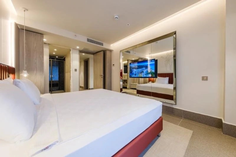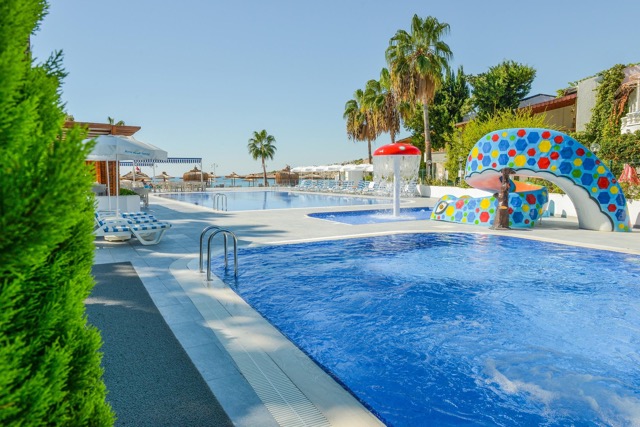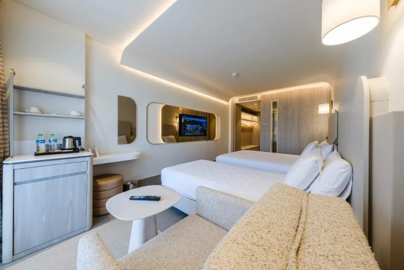KOD 799 Mersin Silifke'de yer alan Deniz Kenarı Resort Hotel, deniz ve güneşin tadını çıkarırken lüks ve konfor arayan misafirler için ideal bir tatil seçeneği sunuyor. Otel, hem çocuklar hem de yetişkinler için çeşitli su aktiviteleri ve eğlenceler sunarak her yaş grubuna hitap ediyor. Açık ve kapalı yüzme havuzları, kaydıraklı havuzlar ve çocuk havuzu gibi olanaklarla su eğlencesini doyasıya yaşayabilirsiniz. Ayrıca, su sporları, canlı müzik ve disko gibi aktivitelerle keyifli vakit geçirebilirsiniz. Otelin SPA ve sağlık olanakları, Türk hamamı, sauna, masaj ve fitness merkezi ile tatil boyunca rahatlama ve yenilenme fırsatı sunuyor. Restoran ve bar seçenekleri, zengin açık büfe yemekler, havuz ve plaj barları ile misafirlere çeşitli lezzetler sunarken, 24 saat açık resepsiyon ve oda servisleri sayesinde konforlu bir hizmet sunuluyor. Çocuklar için oyun parkı, bebek karyolası ve restoranda bebek sandalyesi gibi olanaklar da ailelerin rahat bir tatil geçirmesini sağlıyor. Otelde hızlı check-in/check-out, emanet kasa ve günlük temizlik hizmetleri de mevcut. Engelli misafirler için uygun WC ve banyo gibi erişilebilirlik imkanları da düşünülmüş olan bu otel, deniz kenarındaki konumuyla keyifli ve rahat bir tatil vadediyor.